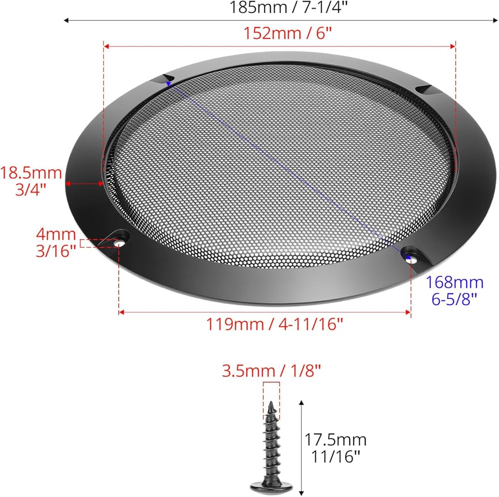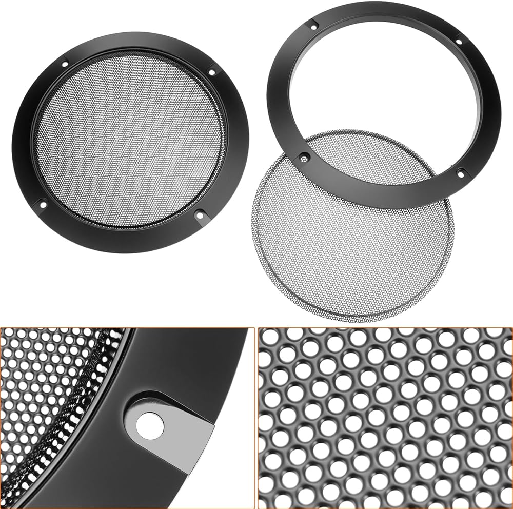 غطاء شواية مكبر صوت دائري شبكي معدني مقاس 6.5 بوصة من QWORK، فولاذ ملفوف على البارد مع حلقة بلاستيكية ABS، ديكور شبكات سماعات الراديو العالمية، حافظة حماية شبكية لشبكة مضخم الصوت، تتضمن براغي