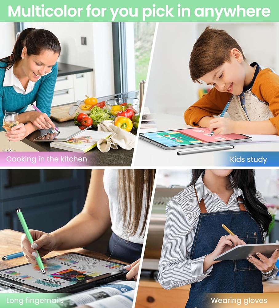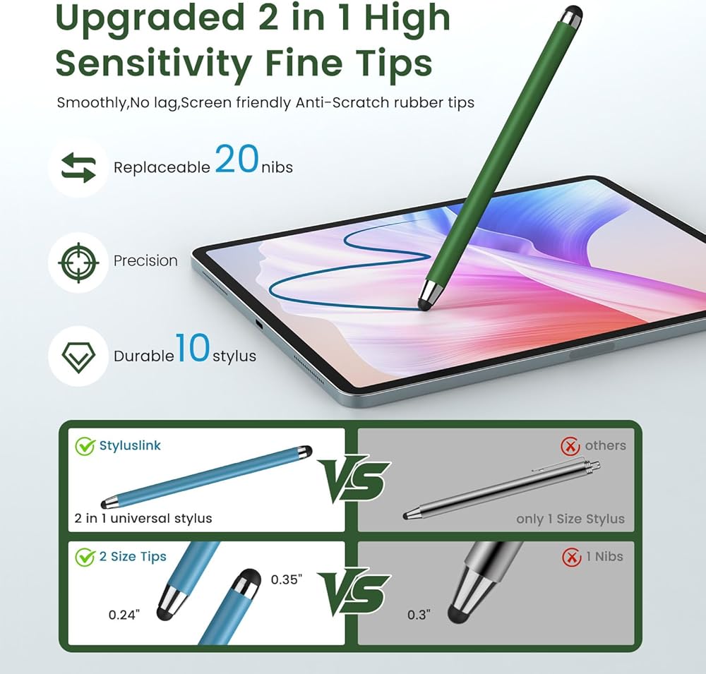 • قلم لشاشة اللمس: قلم شاشة اللمس هذا متوافق مع أجهزة iPhone وiPad وMicrosoft Surface والهواتف الذكية وChromebook وجميع شاشات اللمس، ويوفر طرفه المطاطي دقة وتحكم أكثر سلاسة من إصبعك. إنه فعال للاستخدام في الفصل الدراسي، والبالغين العاملين، وكبار السن الذين يتنقلون في أجهزتهم