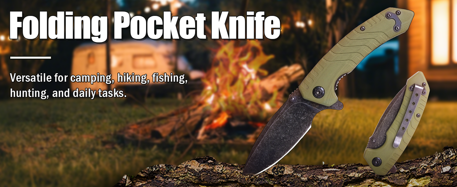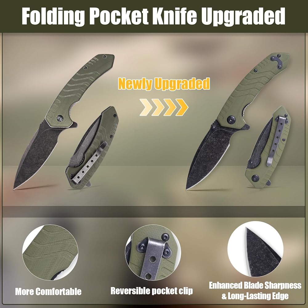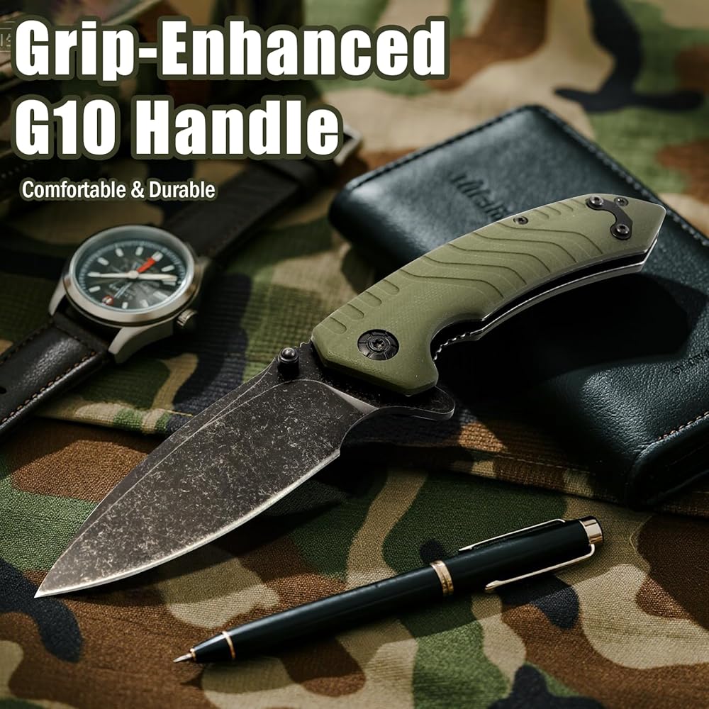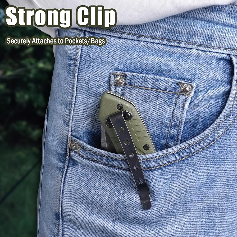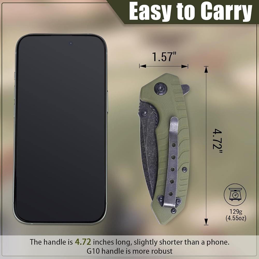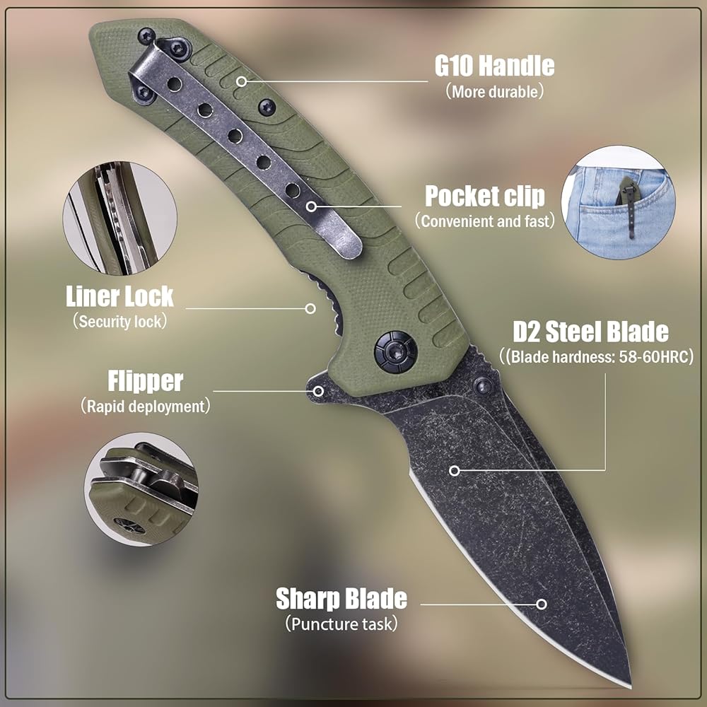 سكين جيب قابل للطي، 3.3 بوصة D2 شفرة فولاذية G10 مقبض سكين EDC صغير مع قفل بطانة، مشبك جيب للرجال والنساء، أداة مثالية للتخييم والصيد والبقاء على قيد الحياة
