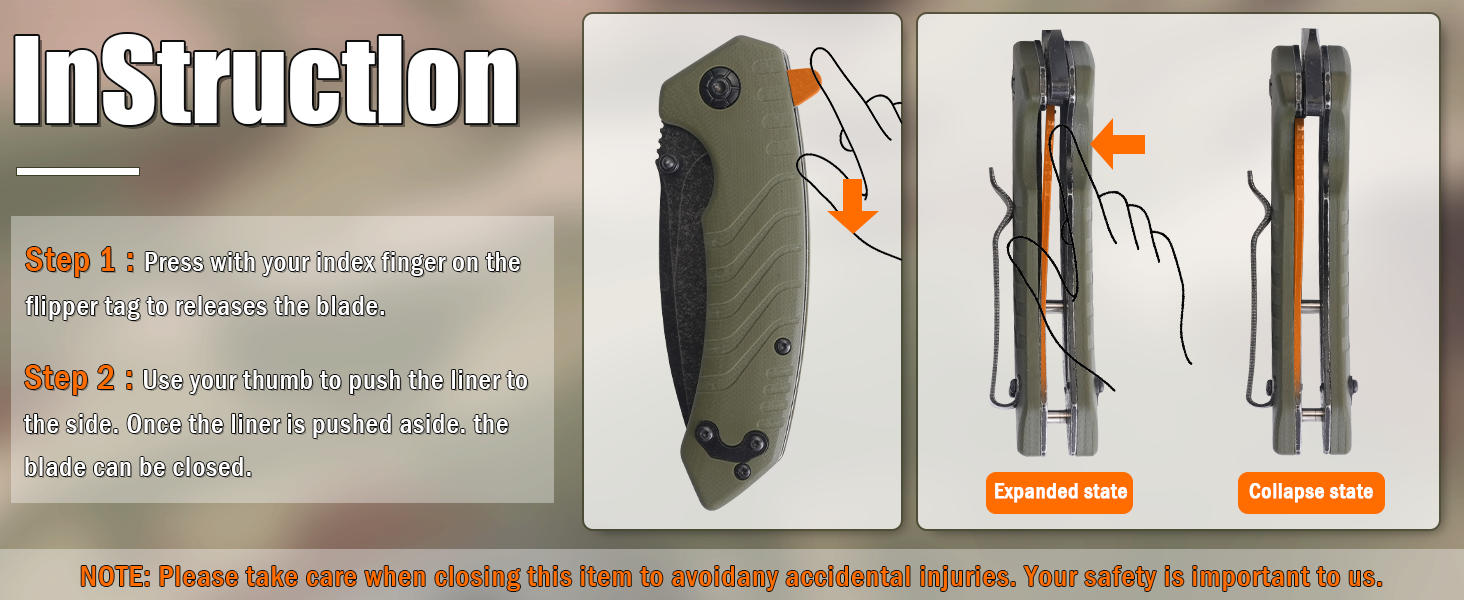 4. فتح سلس وحمل آمن للجيب: مع الزعنفة، استمتع بنشر سريع وآمن للشفرة، مع ضمان بقائها مغلقة بشكل آمن في جيبك لمنع الفتح العرضي.