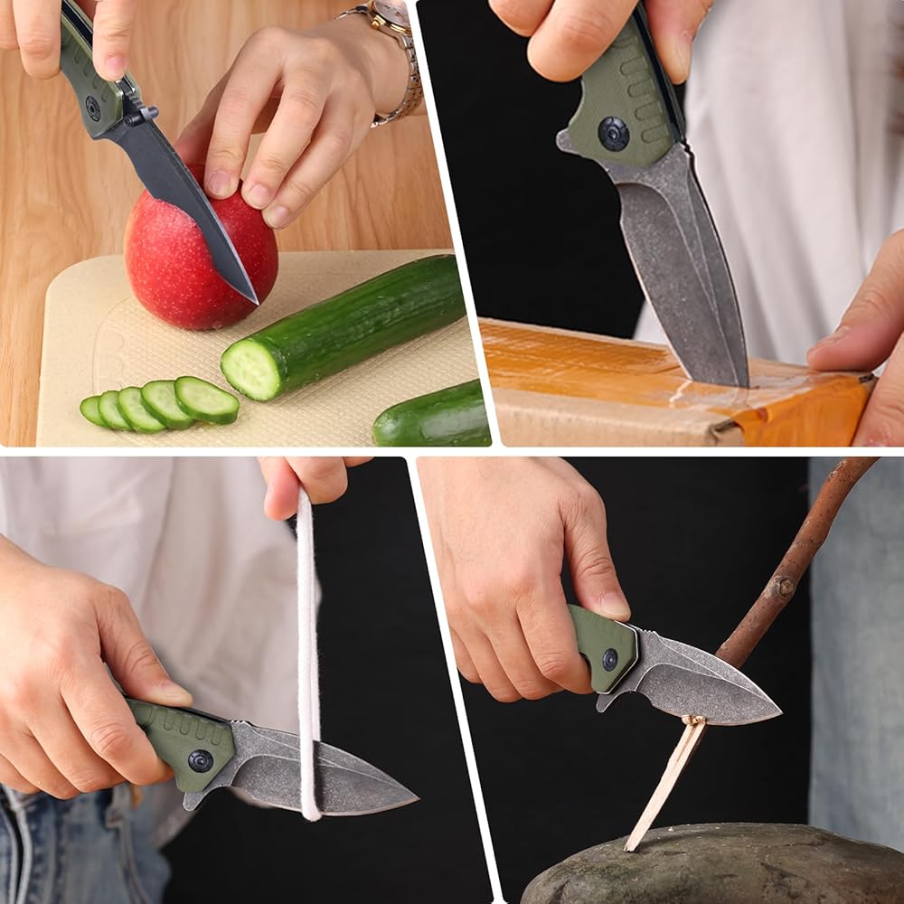 شفرة من الفولاذ المقاوم للصدأ عالية الجودة: مصنوعة من شفرة من الفولاذ المقاوم للصدأ مقاس 3.3 بوصة توفر مقاومة فائقة للتآكل مقارنة بأنواع الفولاذ المقاوم للصدأ الأخرى. تظل الشفرة حادة لفترات أطول وتتحمل التآكل حتى بعد عملية الغسيل الأحفوري السوداء الصارمة. مثالية للمهام اليومية المساعدة وتعمل بمثابة الرفيق المثالي في الجيب.