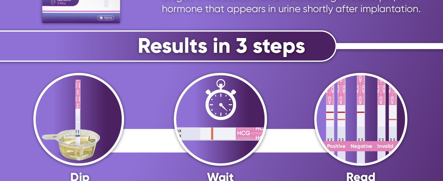 سريع ودقيق - تظهر النتائج خلال 3-5 دقائق. اقرأ شرائط اختبار HCG خلال 10 دقائق؛ النتائج بعد 10 دقائق غير صالحة.
