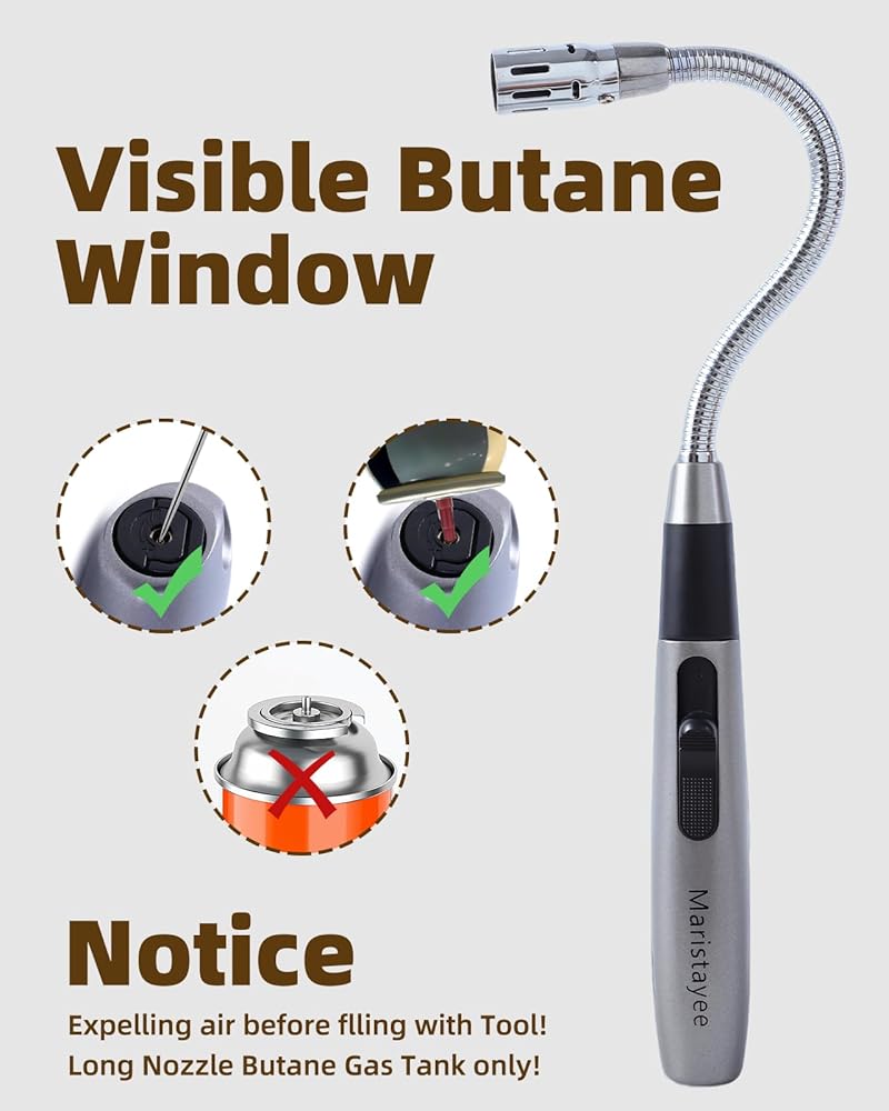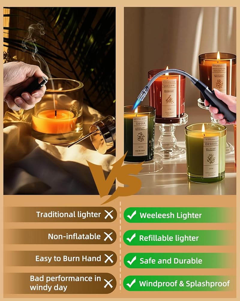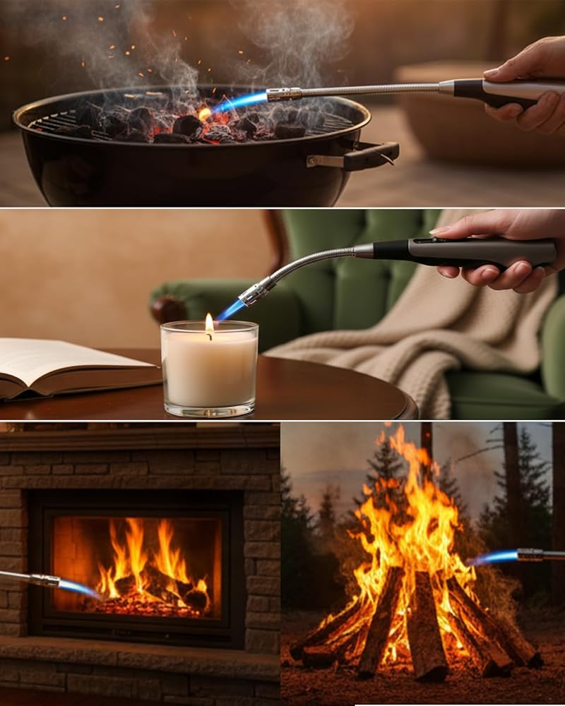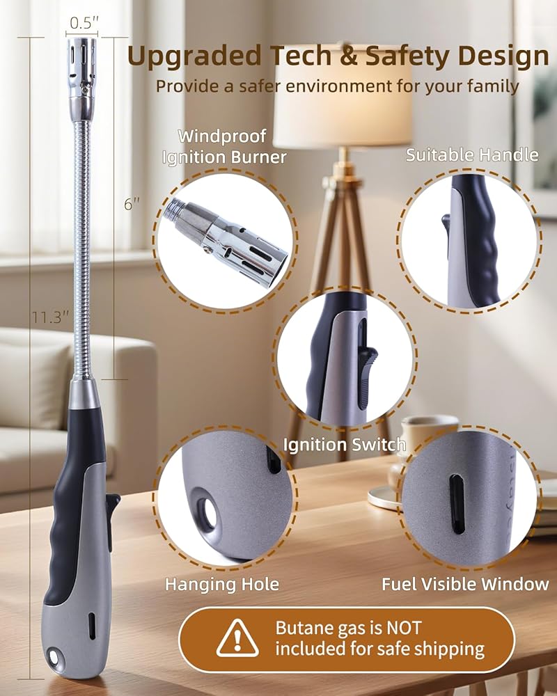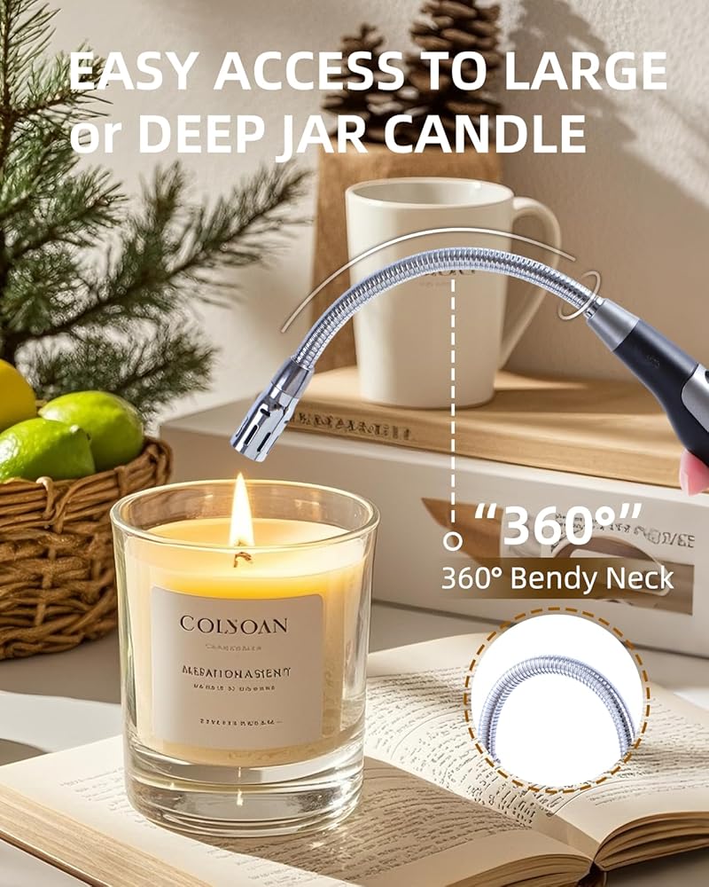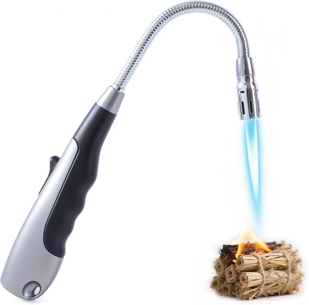 【رقبة مرنة بزاوية 360 درجة】قم بثني وتدوير القداحة بطول 27.94 سم للوصول إلى الفحم أو برطمانات الشموع أو مواقد المخيمات بأمان - بدون أصابع محترقة.