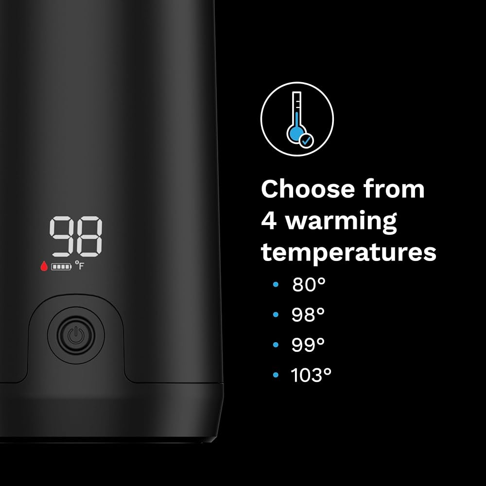 WARMS FASTEST – 3X FASTER THAN OTHER PORTABLE WARMERS: Warms 8 oz in 3 min (from room temp to 98°F); 3x stronger warmer (100 vs 60 watts); Choose from 4 temps - 80°F, 98°F or 103°F for formula/water, or 99°F for milk storage bags