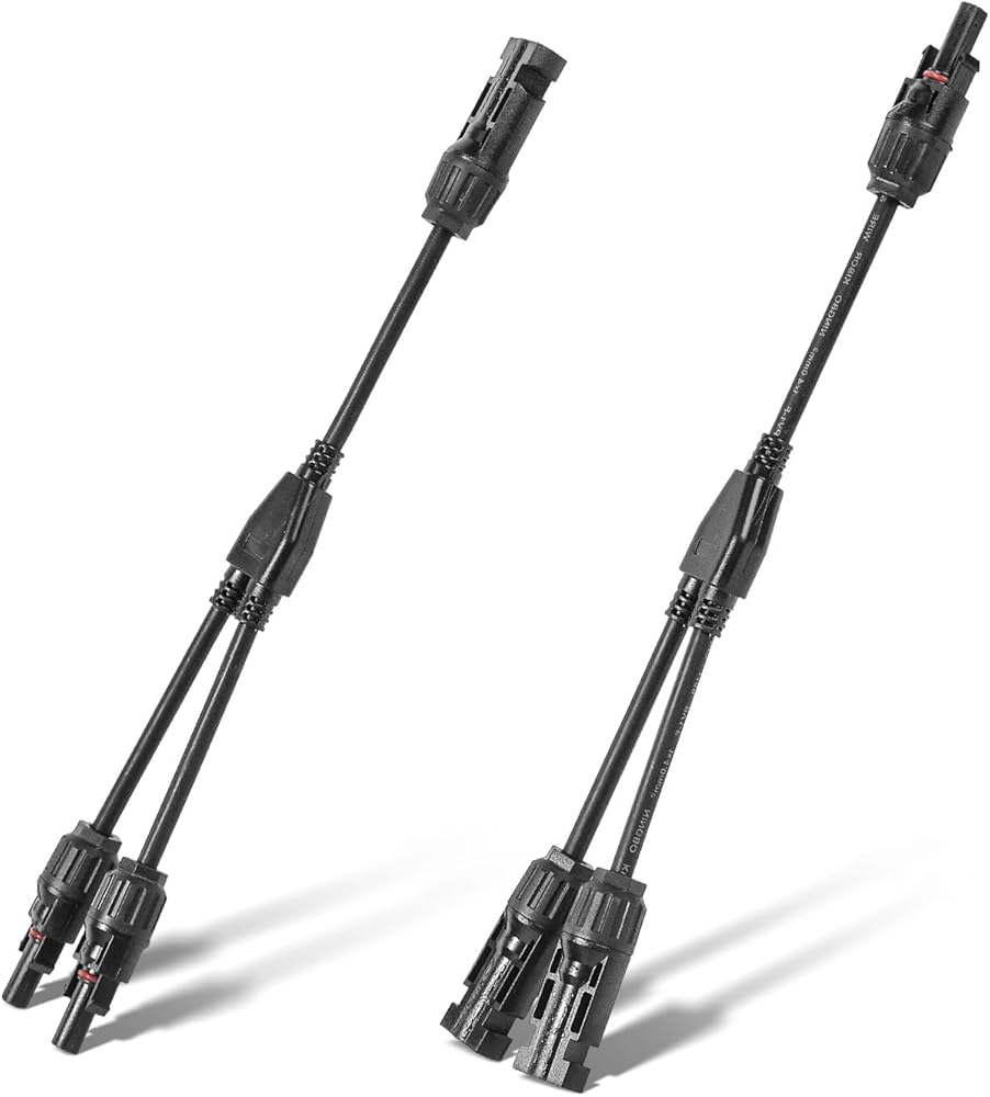 الموصلات الشمسية: تتضمن زوجًا واحدًا من موصلات M/FFFF وF/MMMM، مما يسمح بتوصيل 8 ألواح شمسية بالتوازي للحصول على مخرجات أعلى