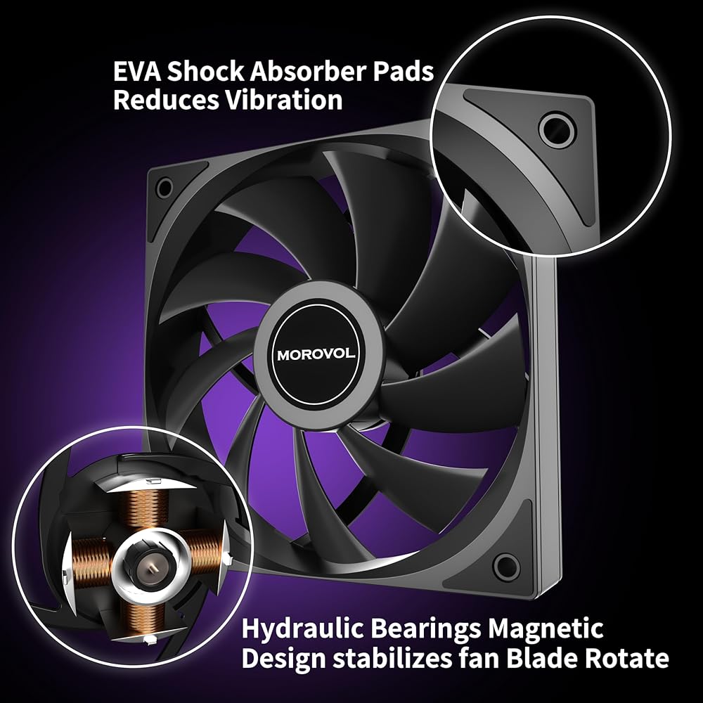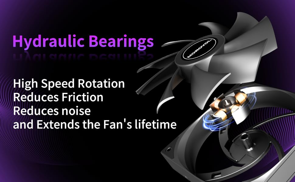 المحمل الهيدروليكي: يستخدم نظام المحمل الهيدروليكي حيث يضمن فيلم الزيت الداخلي المستقر التشحيم الأمثل، مما يقلل بشكل فعال من الاحتكاك المعدني ويطيل عمر المروحة بشكل كبير. وهذا يضمن التشغيل المستقر على المدى الطويل وتبديد الحرارة بكفاءة للهيكل، مما يجعله مثاليًا لإدارة التبريد عالية الكفاءة في صناديق الكمبيوتر.