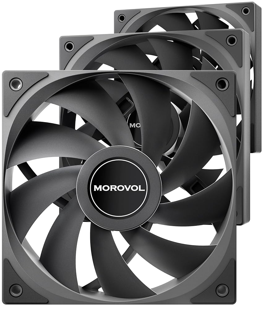 مروحة هيكل، 3 عبوات 120 مم 4 دبابيس PWM مروحة كمبيوتر هادئة، محمل هيدروليكي، سرعة قابلة للتعديل 600 دورة في الدقيقة - 1600 دورة في الدقيقة، أداء ممتاز لتبديد الحرارة، أسود، غير LED