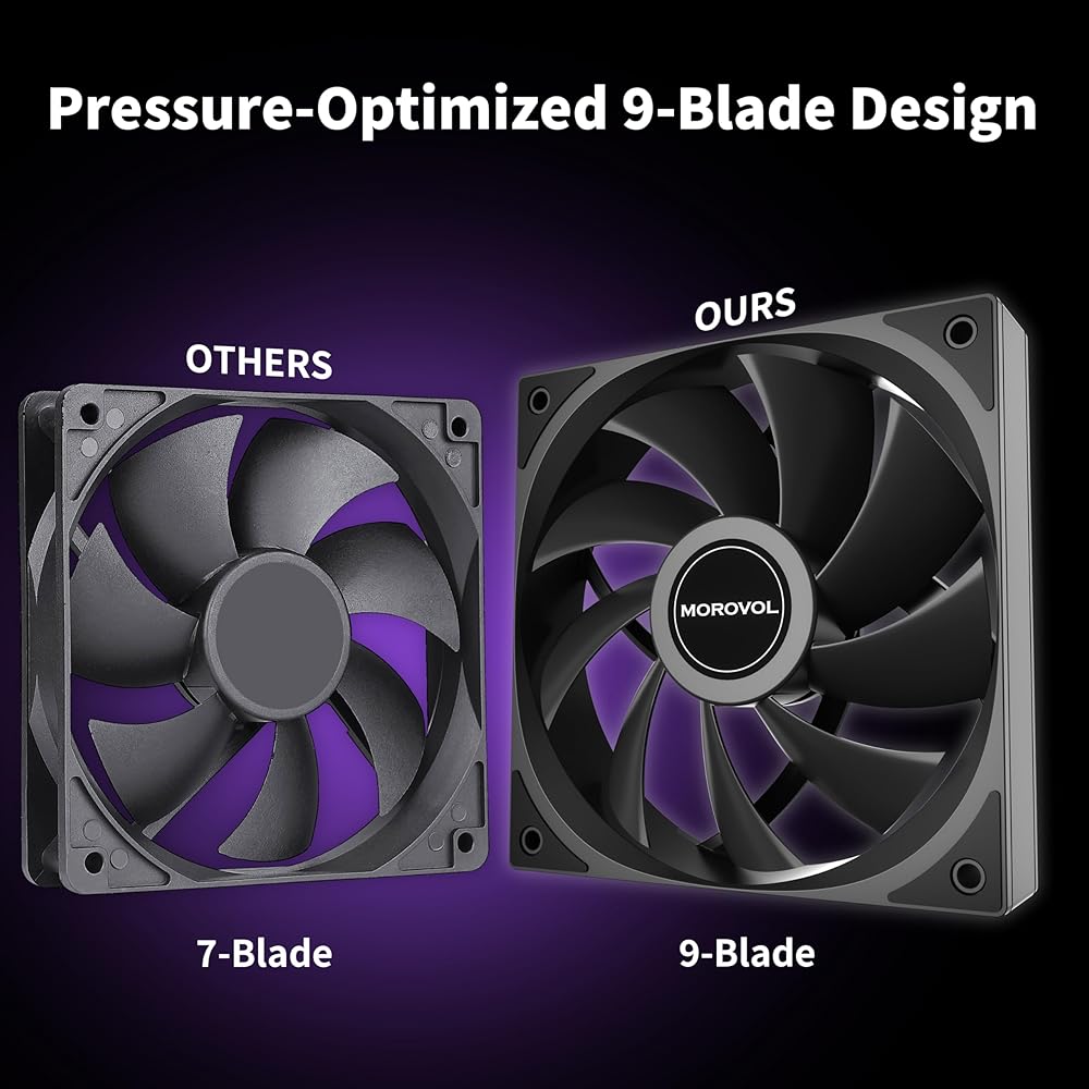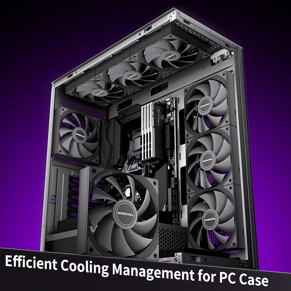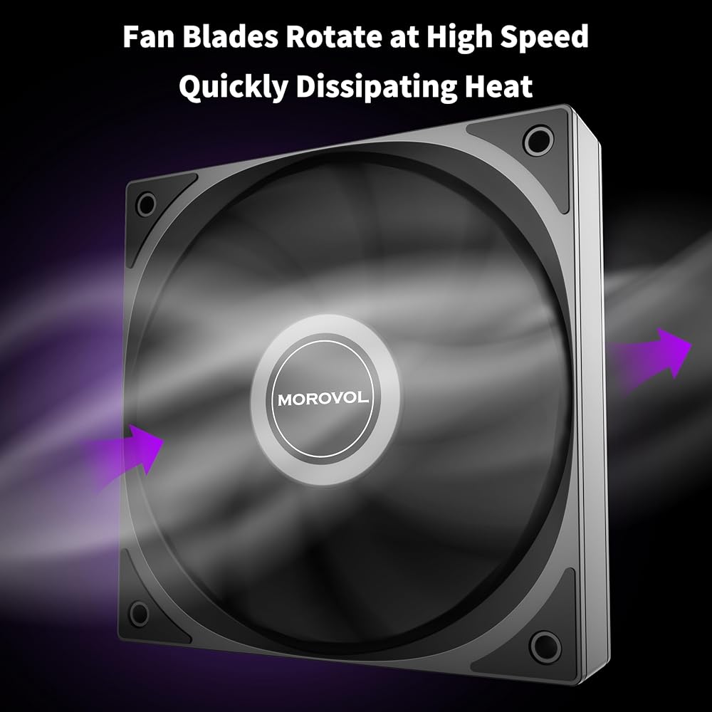 مروحة تبريد عالية الأداء: بحجم قياسي 120 مم وواجهة PWM ذات 4 سنون، توفر كل مروحة تدفق هواء قوي يبلغ 62.51 قدم مكعب في الدقيقة بسرعة قصوى تبلغ 1600 دورة في الدقيقة. وهذا يضمن تبديد الحرارة بشكل فعال ويوفر الموثوقية للمستخدمين ذوي الأداء العالي والاستقرار.