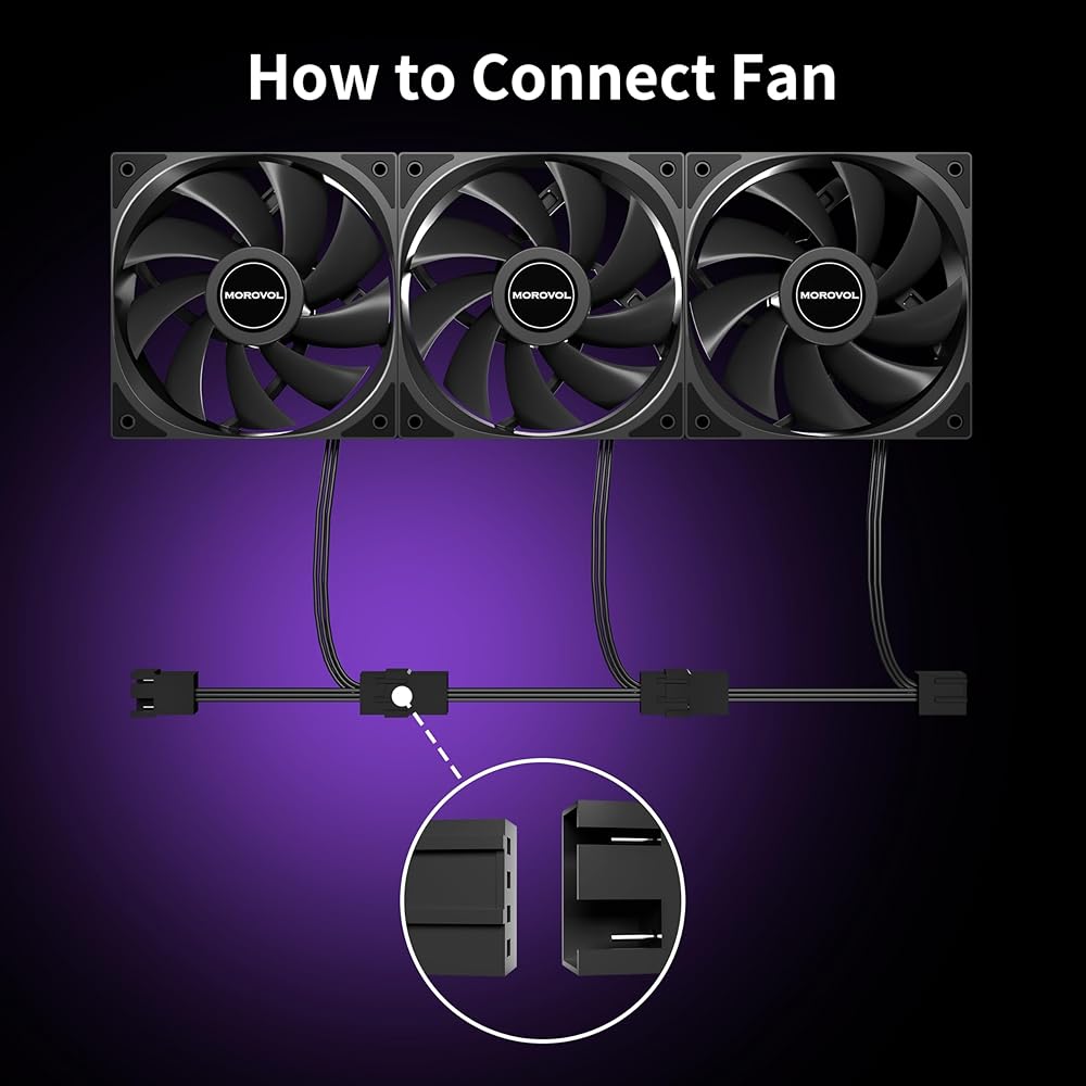 إعدادات سرعة قابلة للتخصيص: من خلال التحكم التلقائي في السرعة PWM ذو 4 سنون، تقوم المروحة بضبط سرعة دورانها بناءً على درجة حرارة اللوحة الأم. وهو يدعم إعدادات سرعة PWM القابلة للتخصيص، بما في ذلك السرعة الكاملة (حتى 1600 دورة في الدقيقة)، ونصف السرعة، ووضع 0 ديسيبل، مما يسمح للمستخدمين بتحقيق التوازن بين الصمت والأداء.
