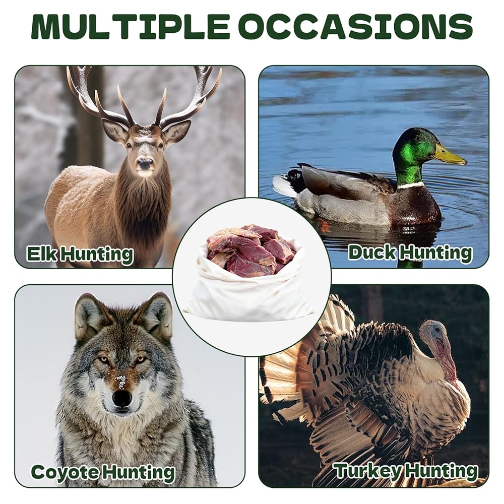 تصميم إغلاق بدون مجهود: تم تصميم رباط السحب عالي التحمل من أجل ملاءمة آمنة ومحكمة، والحفاظ على النضارة والحفاظ على سلامة لعبتك. سواء كنت تقوم بتعبئة اللحوم في الحقل أو تنقلها مرة أخرى، يضمن نظام الغلق سهل الاستخدام هذا بقاء فريستك القيمة في مكان آمن - بدون انسكابات أو فقدان أو تخزين/نقل خالي من المتاعب في كل مرة.