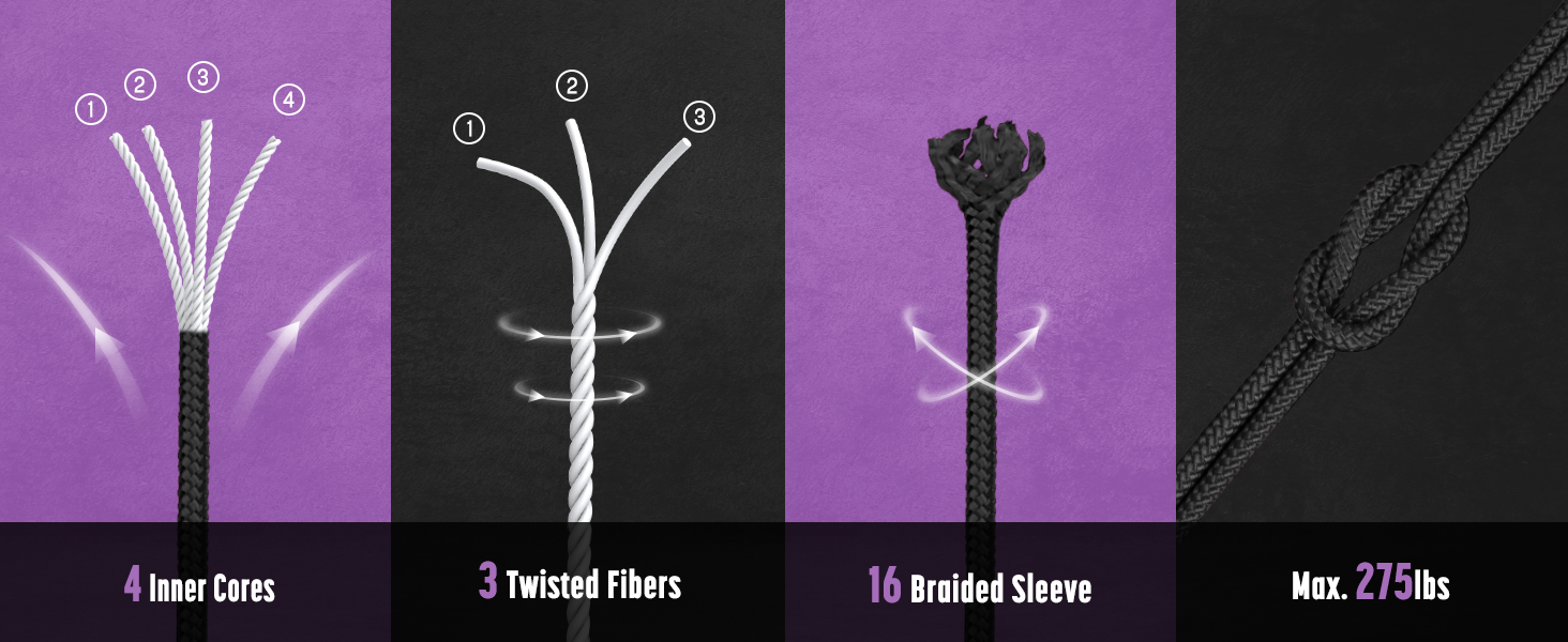 • ✅【Excellent Material】The paracord 2.4mm has a 4 strands nylon inner core and a 16 strands polyester outer sheath design, each inner strand is braided with 3 twisted nylon fibers. Made of excellent material, this tactical cord can support up to 275lbs of weight.