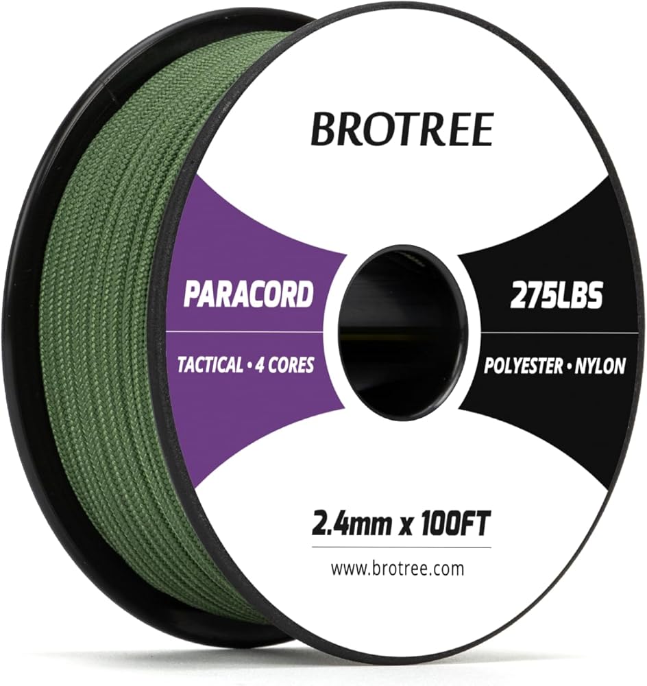 Brotree 275 Paracord 2.4mm Tactical Cord 100' Nylon Rope 4 Strands Parachute Cord