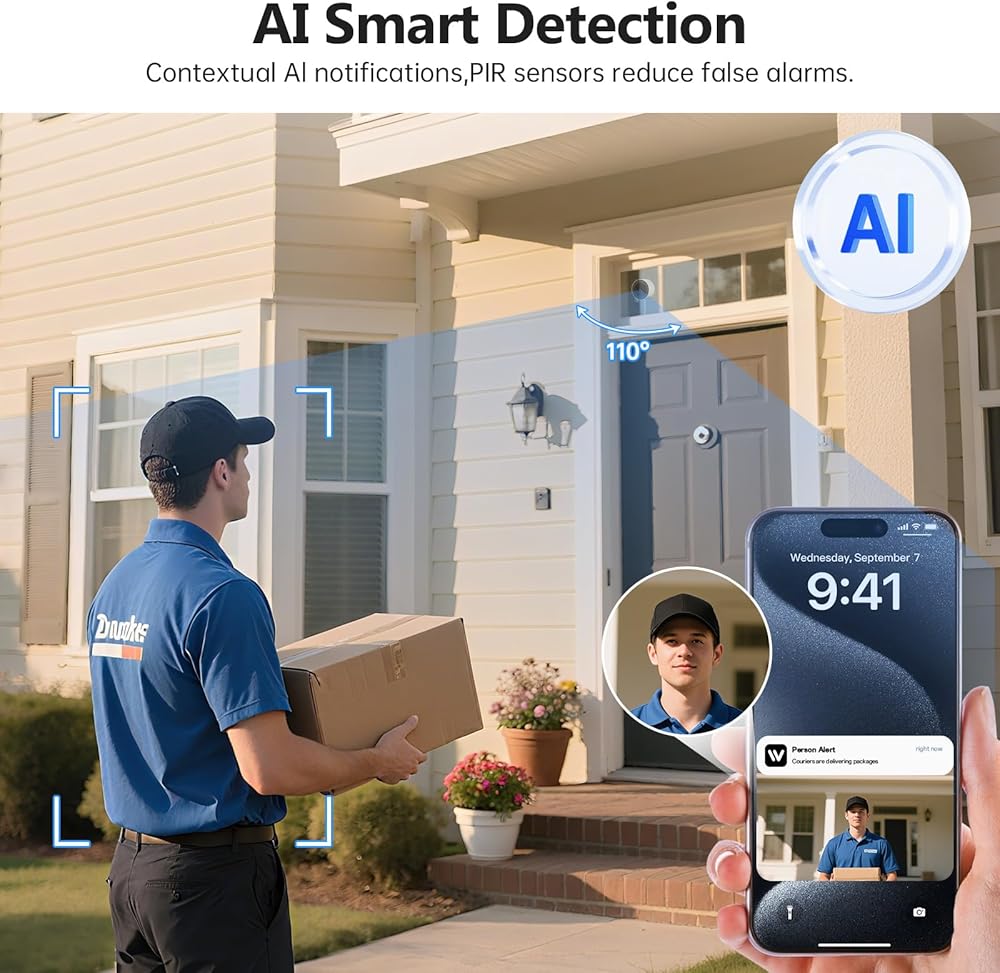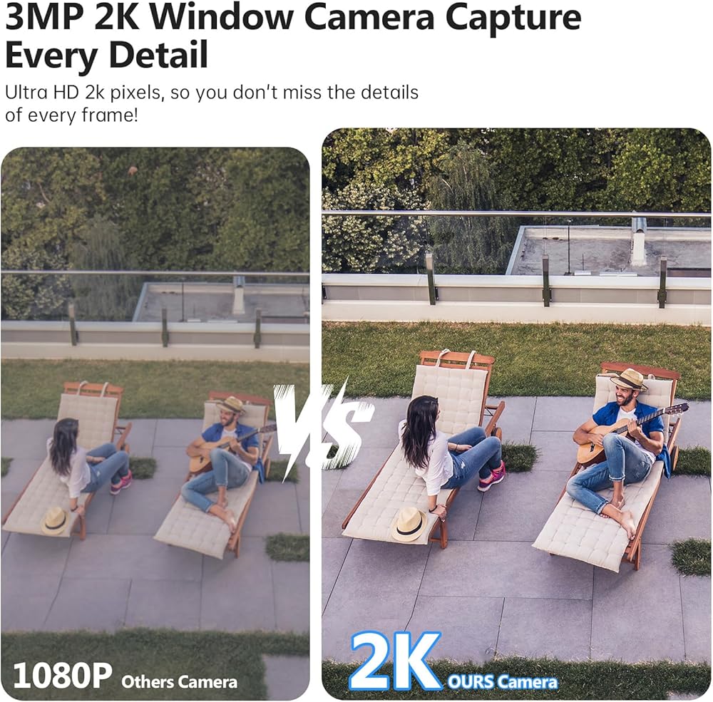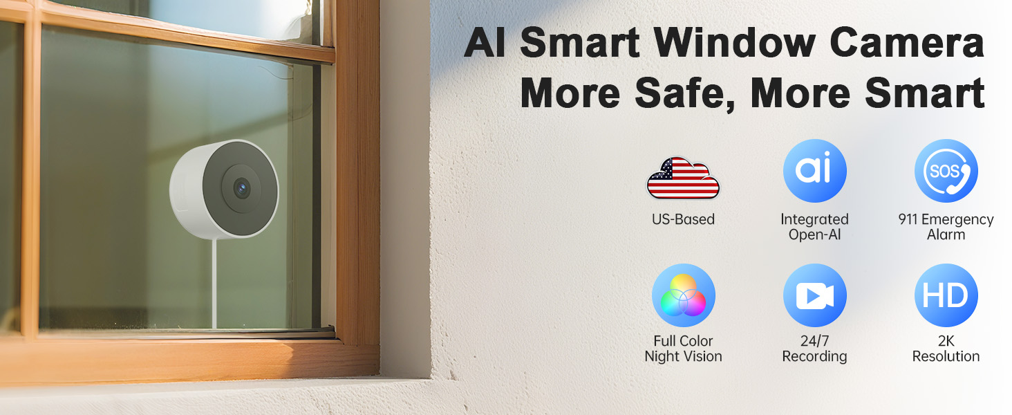 كاميرا نافذة، كاميرات داخلية 2K 2.4G WIFI لأمن المنزل مع رؤية ليلية بضوء النجوم، اكتشاف ذكي بالذكاء الاصطناعي، إرسال طوارئ 911، سحابة مقرها الولايات المتحدة، محادثة ثنائية الاتجاه، تسجيل 24/7، تثبيت سهل وسريع