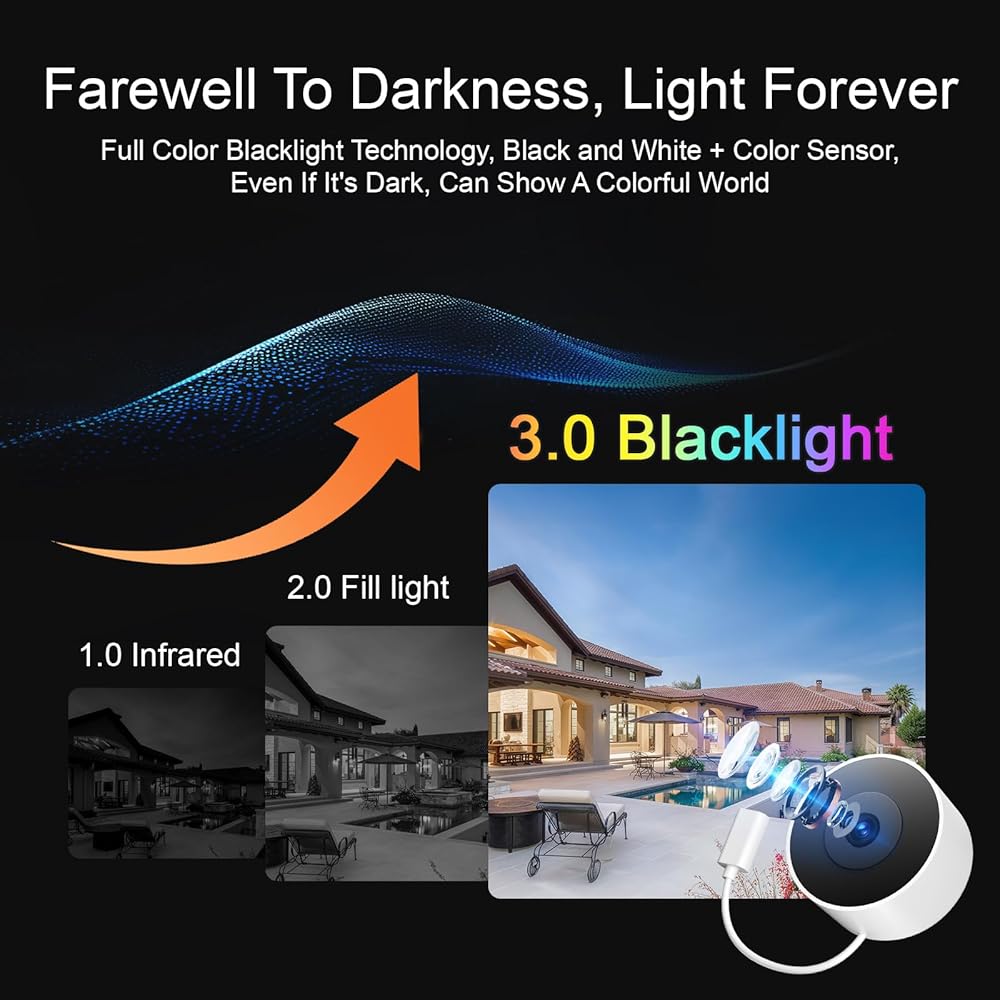 【دقة 2K HD ورؤية ليلية ملونة باللون الأسود】توفر كاميرات النافذة الخاصة بنا للأمان المنزلي فيديو وصور بجودة 2K، مما يضمن أنك تستطيع رؤية تفاصيل واضحة ليلاً ونهارًا. تدعم كاميرا الأمان الداخلية الرؤية الليلية بالألوان الكاملة Blacklight ولا تتأثر بالظلام. التقط الأشياء بوضوح ضمن نطاق 3 أقدام حتى في ظروف الإضاءة المنخفضة.