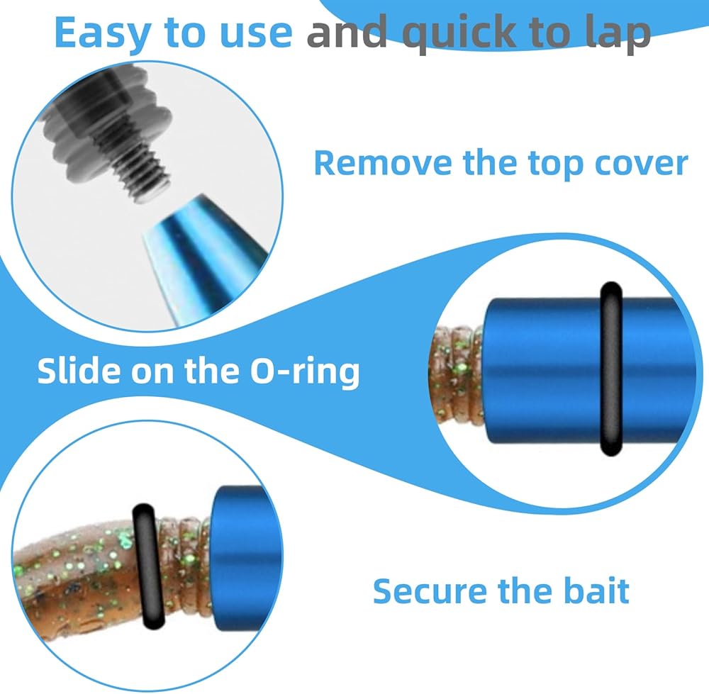 Easy Installation Tools – Slip stick bait into the thick-wall aluminum tube, roll on a silicone O-ring, hook under ring—perfect wacky rig every time without tearing plastic.
