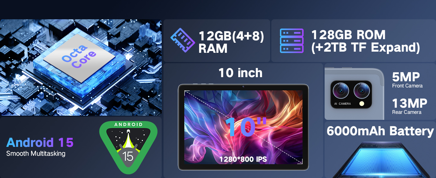 افعل ما تريد، دون تداخل الإعلانات - يوفر هذا الجهاز اللوحي Winsing مقاس 10 بوصة كل ما تحتاجه: معالج ثماني النواة سريع، وأحدث إصدار Android 15، بدون إعلانات، وذاكرة وصول عشوائي سعة 12 جيجابايت (4+8) لتعدد المهام بسلاسة بين تطبيقات الترفيه وتطبيقات التعلم وألعاب الأولاد والبنات وبث الأفلام. إنه الجهاز اللوحي القوي وبأسعار معقولة بنظام أندرويد 10 بوصة الذي تختاره العائلات الذكية