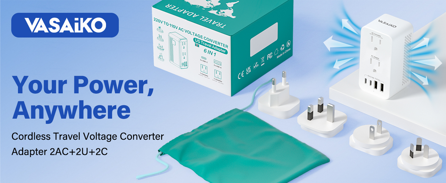 مجموعة محول الجهد الكهربي: تتميز بمقبس متدرج يحول 220-240 فولت إلى 110 فولت للأجهزة الأمريكية بقدرة 1200 وات، مثل الغلايات، ومقبس جهد تكيفي للأجهزة ذات الجهد المزدوج 100-240 فولت حتى 2000 وات، مثل أجهزة الكمبيوتر المحمولة، مما يوفر كل الطاقة التي تحتاجها في الخارج