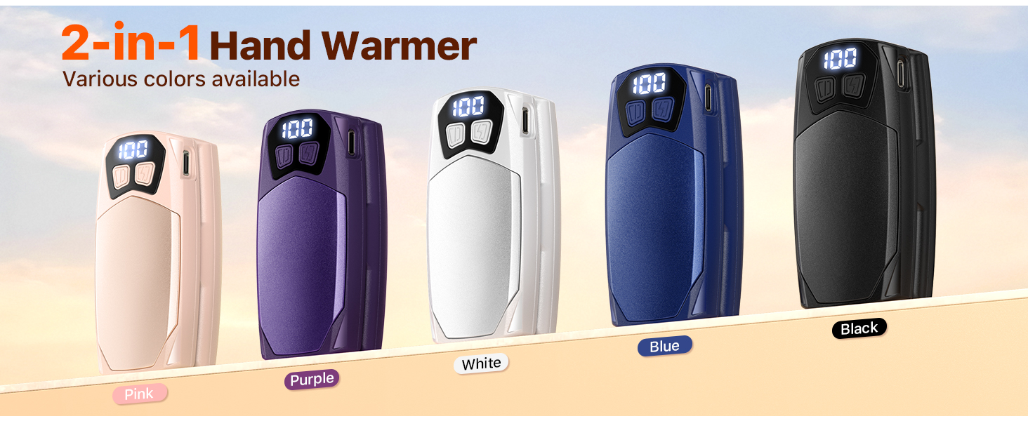 Stay warm anywhere, anytime with our 2-in-1 Rechargeable Hand Warmers. Each compact unit packs a 3000mAh battery, features5 customizable heat settings, and delivers instant warmth in just 1 second, reaching the perfect temperature of131°Ffor ultimate comfort.