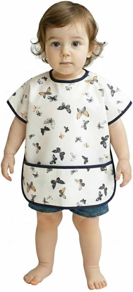 This short sleeve waterproof bib makes baby mealtime and toddler feeding clean and simple. Designed for ages 6 to 24 months, it offers wide coverage to protect clothes during meals, snacks, and crafts. The lightweight BPA-free fabric is soft on skin and easily wipes clean or machine washes. Perfect for home or daycare, this feeding apron is ideal for baby-led weaning, self-feeding, or messy play.