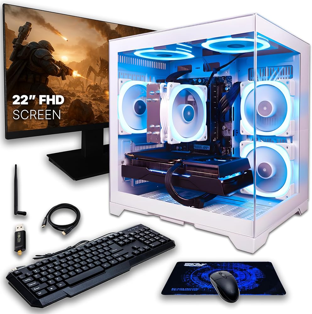 كمبيوتر ألعاب تم تصميمه مسبقًا لتوفير الراحة: يأتي مزودًا بنظام التشغيل Windows 11 المثبت لإعداد التوصيل والتشغيل؛ اتصل بسرعة عبر شبكة WiFi 6 plus Bluetooth لوحدات التحكم وسماعات الرأس ومكبرات الصوت، والتحكم في إضاءة RGB وتصميم الهيكل الأسود ومبرد الهواء.