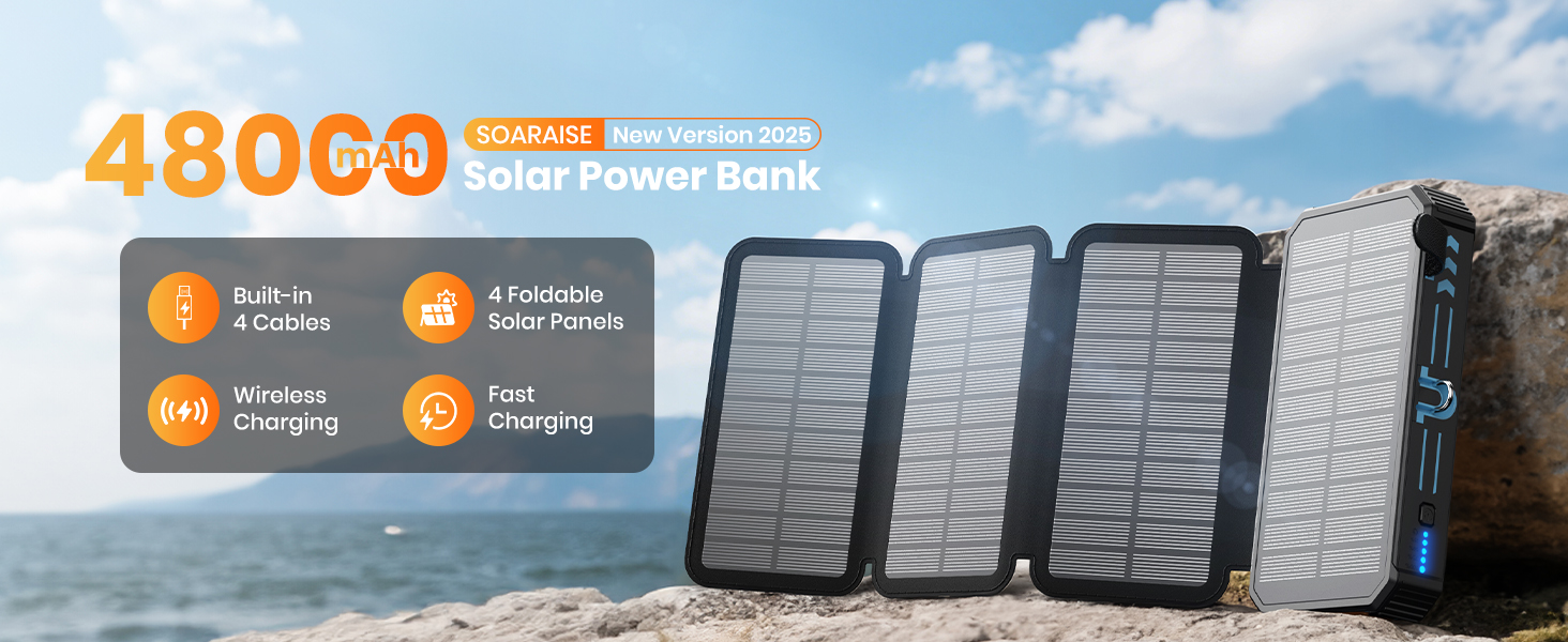 بنك الطاقة الشمسية الضخم بقدرة 48000 مللي أمبير في الساعة: يتميز ببطارية ليثيوم بوليمر عالية السعة بقدرة 48000 مللي أمبير في الساعة، ويوفر هذا الشاحن الشمسي أمانًا محسنًا وعمر بطارية ممتدًا - مما يوفر دورات شحن أكثر بنسبة تصل إلى 80% مقارنة بالبطاريات التقليدية. مثالية للمغامرات الطويلة في الهواء الطلق.