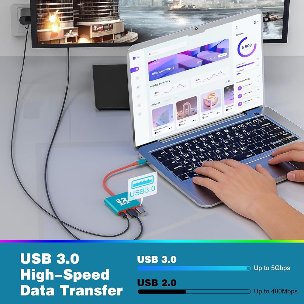 محطة إرساء بديلة لجهاز نينتندو سويتش: تم تصميم قاعدة توصيل التلفزيون هذه خصيصًا لتحل محل قاعدة توصيل نينتندو سويتش الأصلية. وهو متوافق مع Switch OLED ووحدات تحكم الألعاب الأخرى، ويمكنه الاتصال بالأجهزة المجهزة بمنافذ USB-C، مثل الهواتف الذكية والأجهزة اللوحية ومحطات Samsung DeX.