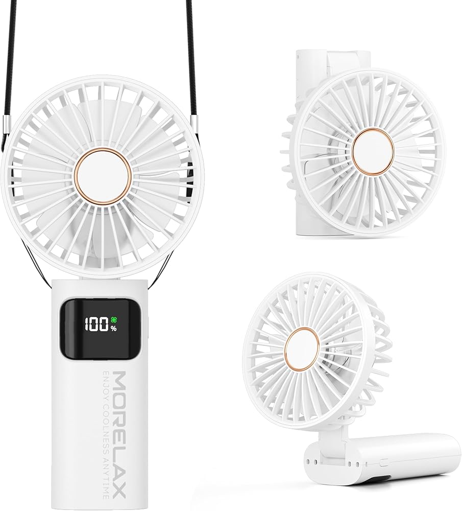 【تصميم متعدد الأغراض 5 في 1】المروحة الصغيرة المحمولة باليد سهلة الإمساك؛ يمكن استخدام المروحة القابلة للطي بزاوية 90 درجة كمروحة طاولة صغيرة؛ تأتي المروحة الشخصية مع حامل، مما يسمح لك بوضعها على الحامل لاستخدامها كمروحة سطح المكتب؛ يعمل الحامل أيضًا كحامل للهاتف؛ تأتي مروحة الرقبة مع حزام قابل للتعديل، مما يحرر يديك. استمتع بالنسمات المنعشة في أي وقت وفي أي مكان، حتى في أيام الصيف الحارة، مما يجعلك تشعر بالانتعاش والراحة.