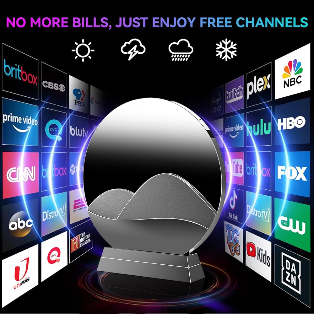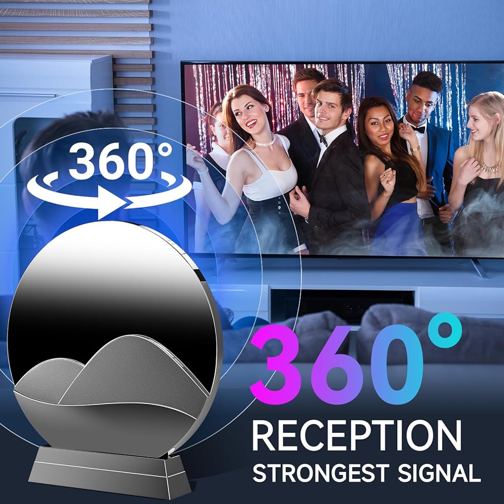 • شريحة IC مطورة وإشارة استقبال 360 درجة: يتميز هوائي التلفزيون الداخلي الخاص بنا بأحدث مضخم صوت 2026 ورقاقة IC مطورة لأداء فائق. يعمل هذا النظام الذكي على تعزيز الإشارات الضعيفة، ويقلل من التداخل، ويوفر وضوحًا محسنًا للصورة. سواء كنت تشاهد الأخبار أو الرياضة أو برامجك المفضلة، يمكنك الاعتماد على قنوات تلفزيونية واضحة وخالية من التشويش مع دعم HD و4K وحتى 8K. استقبال 360 درجة للقنوات التلفزيونية الرائعة والمستقرة دون أي فواتير