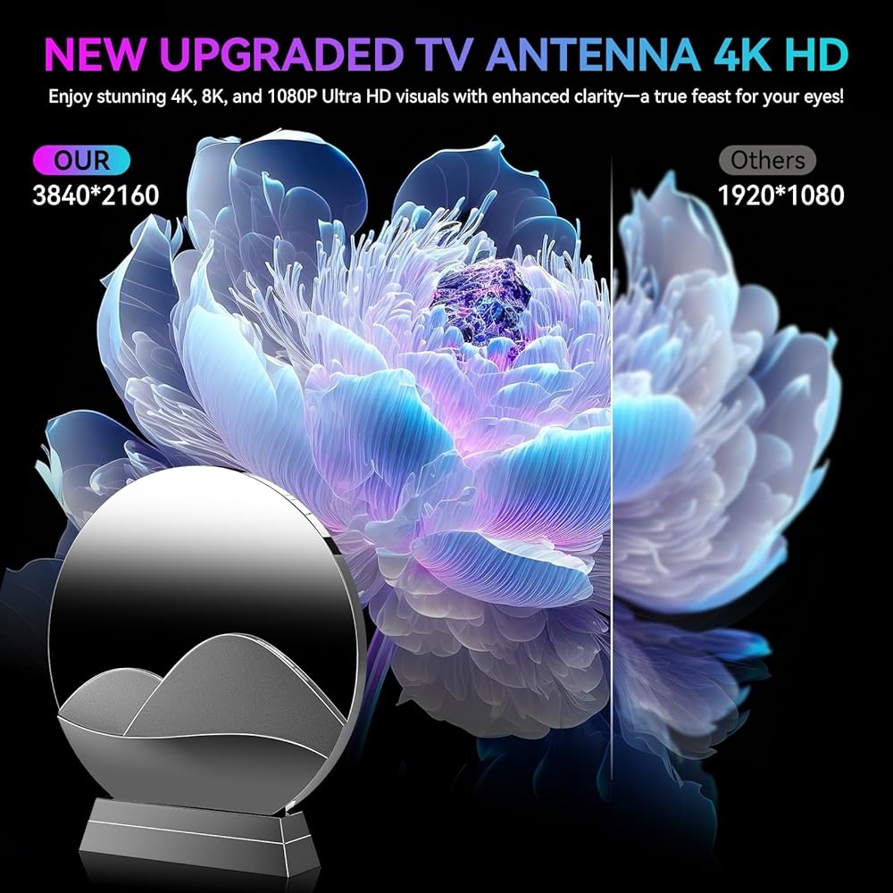 • استمتع بقنوات 4K HD المجانية: قل وداعًا لفواتير الكابلات باهظة الثمن الآن! يتيح لك هوائي التلفزيون الداخلي الخاص بنا مشاهدة القنوات المحلية المجانية إلى الأبد. استمتع بالشبكات الشهيرة مثل ABC وCBS وNBC وFOX وPBS والمزيد بجودة HD و4K الواضحة. شاهد الأخبار والرياضة والعروض والأفلام دون أي فواتير شهرية. يدعم 4K، 8K، 1080p، وغيرها من التنسيقات الرقمية
