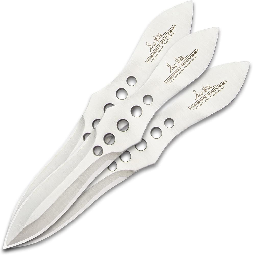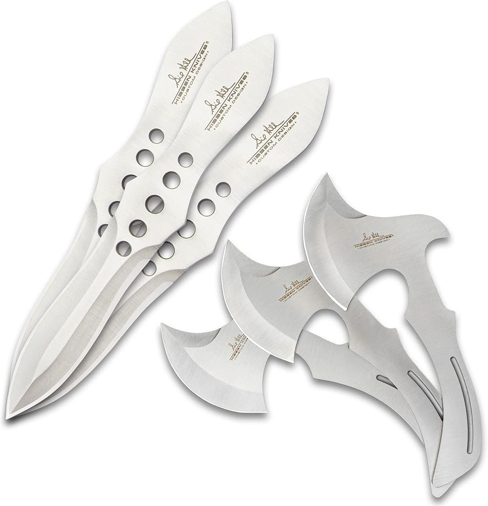 مجموعة رمي الفأس والسكين من Hibben | قطعة واحدة من الفولاذ المقاوم للصدأ 3Cr13 | غمد حزام نايلون متين | تتضمن ستة قاذفات | تصميم ذو قبضة منحنية | رمايات دقيقة لصقل مهاراتك