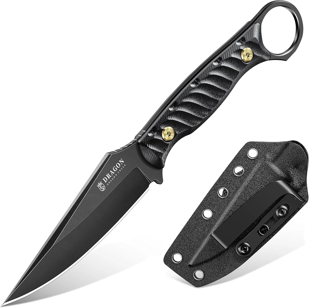 سكين دراجون كريك ذو الشفرة الثابتة - سكين النجاة في الهواء الطلق مع غمد للتخييم والمشي لمسافات طويلة كهدية للرجال باللون الرمادي in Kuwait