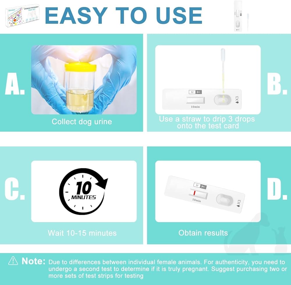عملية غير احترافية: لا تتطلب خبرة بيطرية - ما عليك سوى جمع البول وإضافة 3 قطرات إلى بطاقة الاختبار لاكتشاف الحمل في المنزل بسهولة.