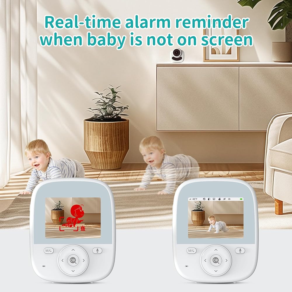 جهاز مراقبة الطفل مع الكاميرا والصوت، جهاز مراقبة الطفل بالفيديو مقاس 2.8 بوصة مع ناقل حركة آمن بدون شبكة WiFi، رؤية ليلية، مستشعر درجة الحرارة، محادثة ثنائية الاتجاه، اكتشاف العدسات الخارجية، تذكير بالتغذية