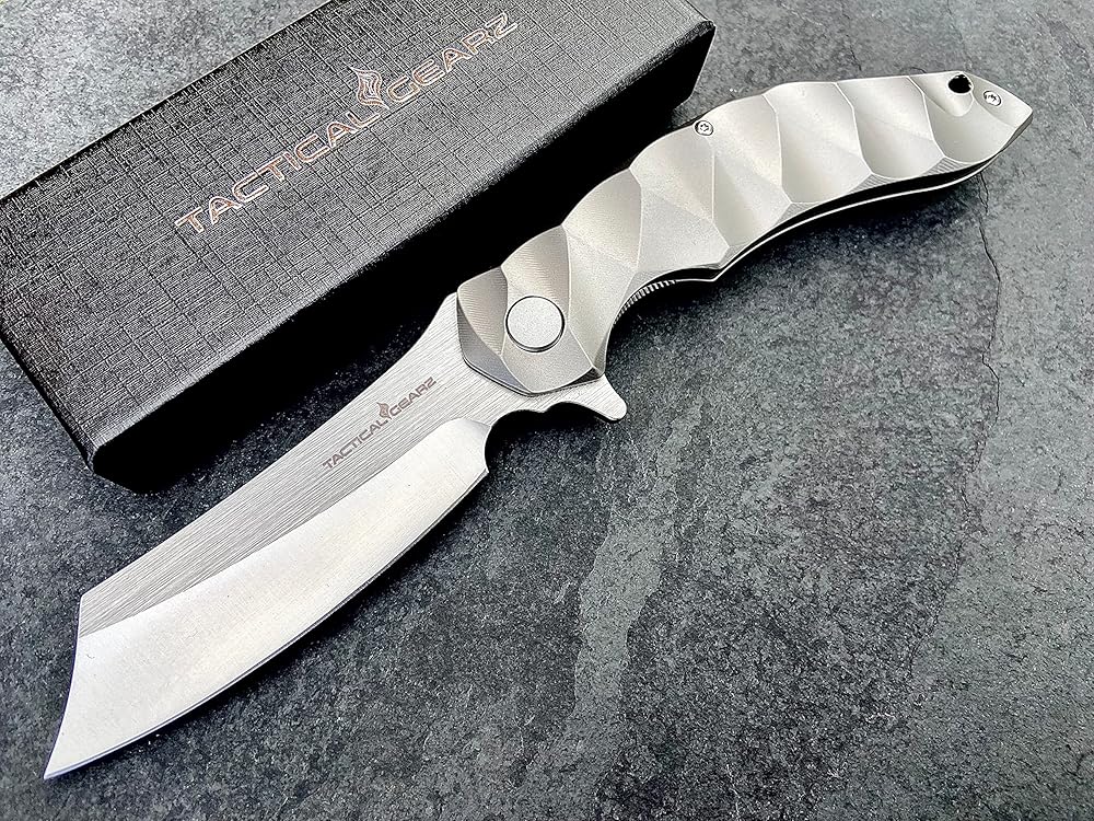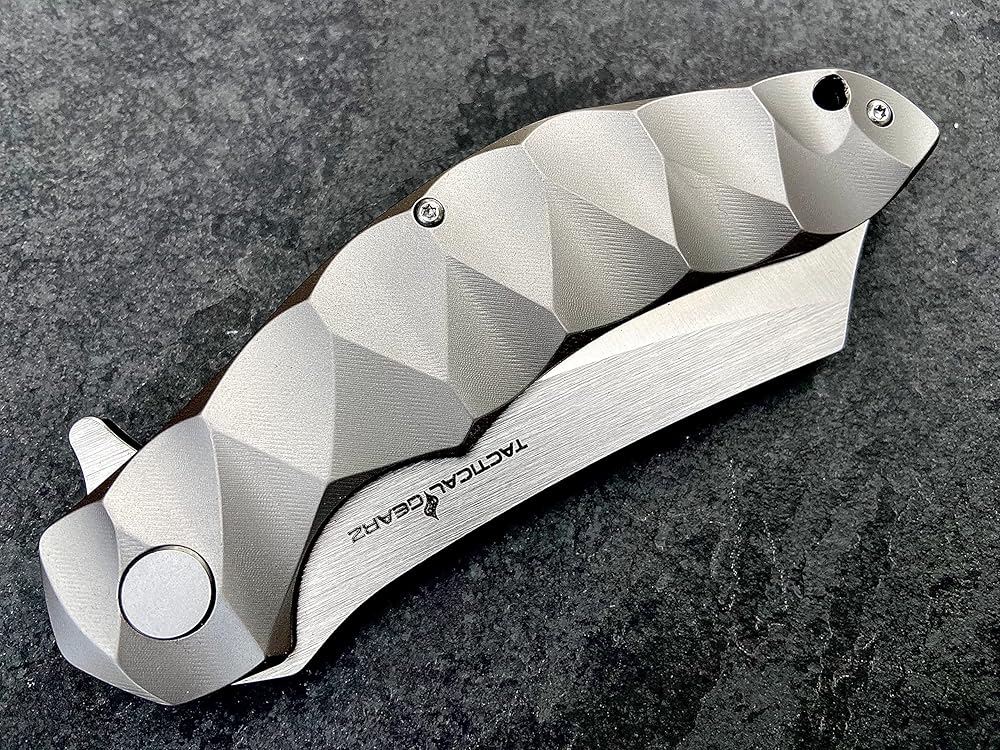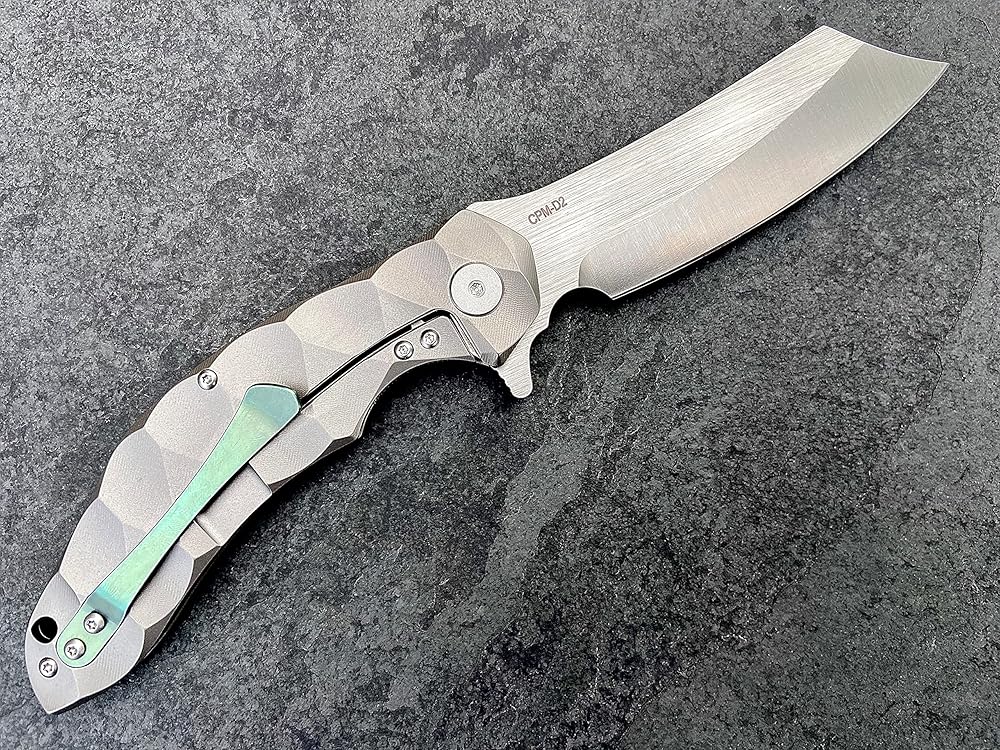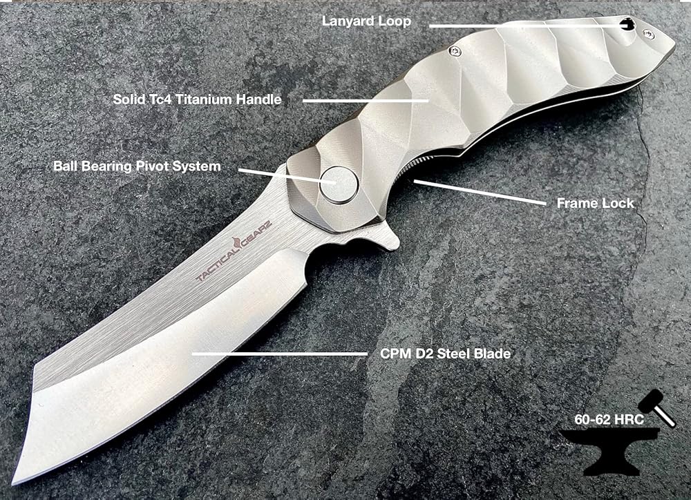 - سكين جيب ممتاز! مقبض تيتانيوم Tc4 صلب! الشفرة الفولاذية الحادة CPM-D2! تتميز الشفرة بالنشر السلس والسريع دون عناء!