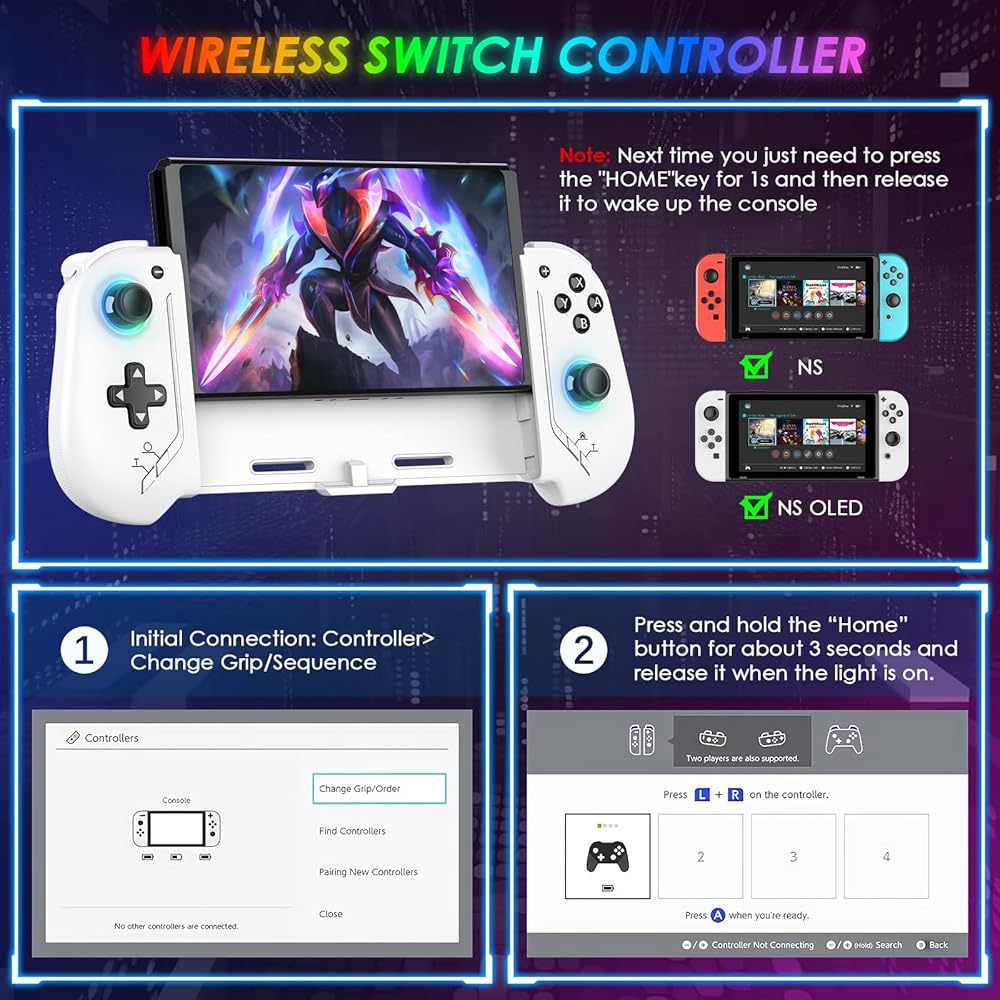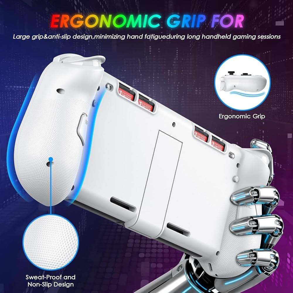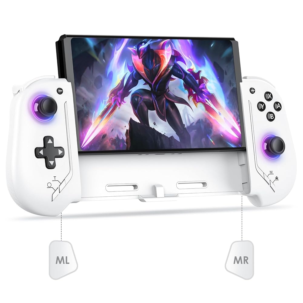 • 【وحدة تحكم بمفتاح من قطعة واحدة بتأثير القاعة】لا يوجد انجراف! متوافق تلقائيًا مع Switch/Switch OLED. لا حاجة إلى تعديل يدوي. يتميز بمقابض كبيرة الحجم مريحة في الإمساك تلائم منحنيات اليد للاستمتاع بألعاب ماراثونية خالية من التعب، مع عصي تحكم سائلة وأزرار ميكانيكية للتحكم الدقيق.