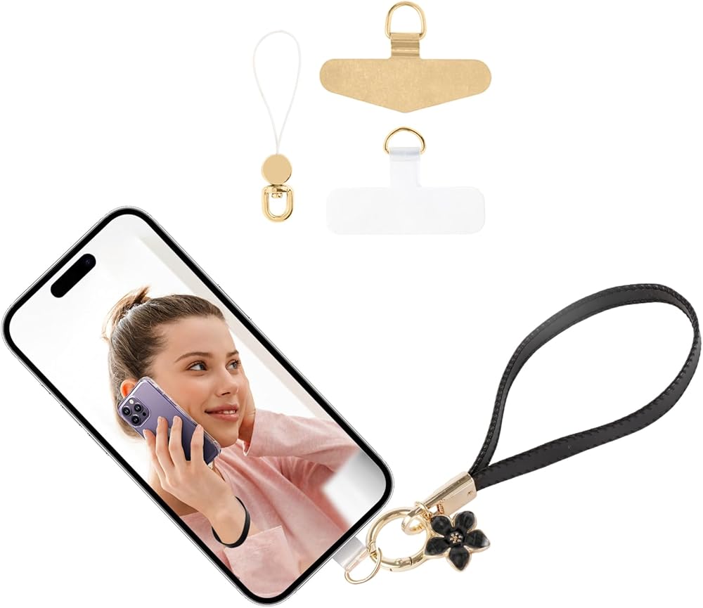 1. 🟡 تصميم زهور أنيق ومواد فاخرة: يتميز بسحر زهرة رقيق ومتلألئ (سُمك 6.2 ملم تقريبًا) مرفق بحلقة من الذهب الوردي. الحبل نفسه مصنوع من جلد ناعم الملمس عالي الجودة مع خياطة دقيقة للحصول على مظهر فاخر وعصري. تم تشطيبه بحلية زهرة الكمثرى ABS القابلة للفصل. مثالي لإضافة لمسة من الأناقة لهاتفك مع الحفاظ عليه آمنًا.
