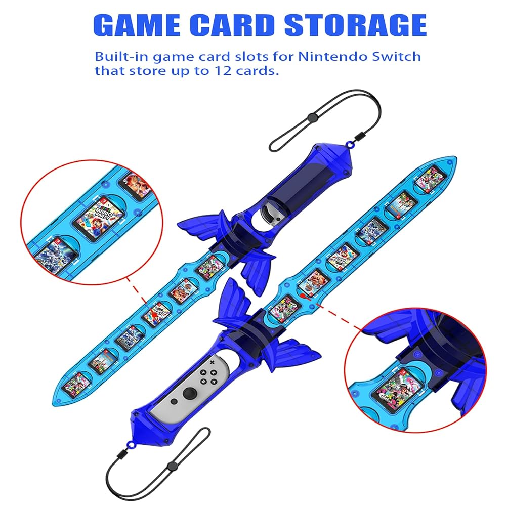 ملحقات سيف KOEBSHPE لجهاز نينتندو سويتش، ملحقات سيف Skyward لجهاز Switch Sports/Legend of Zelda: Tears of the Kingdom/Skyward Sword HD، مع 12 فتحة لبطاقة ألعاب Switch (أزرق)