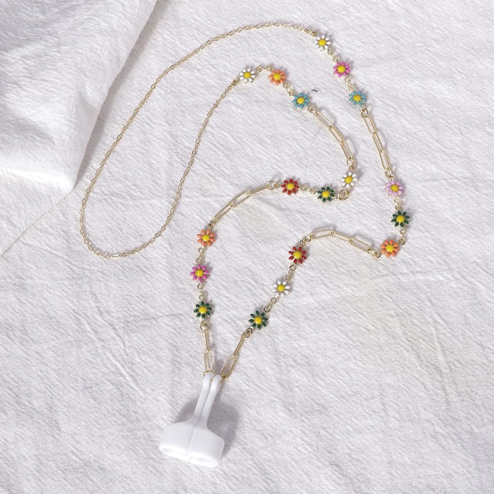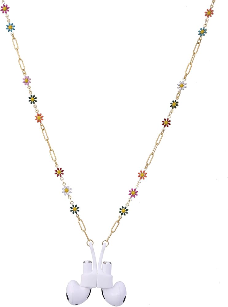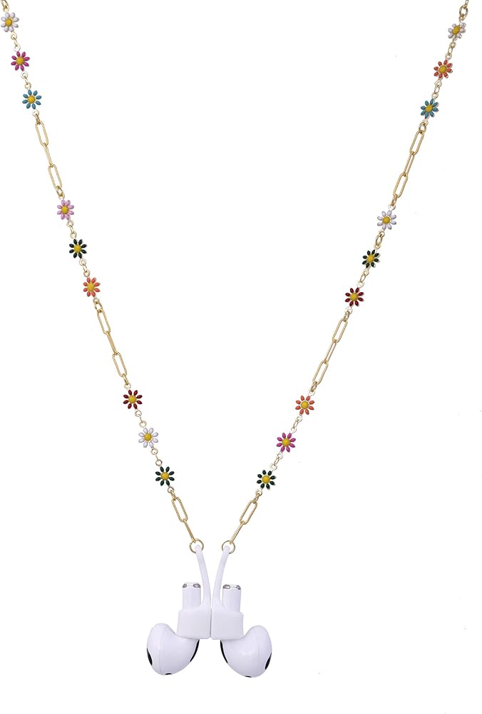 EGEN قلادة ملونة على شكل زهرة مضادة للفقد سلسلة من النحاس الذهبي ملحقات مع غطاء سيليكون مغناطيسي حامل حزام الحبل لـ Airpods Pro 3 2 1
