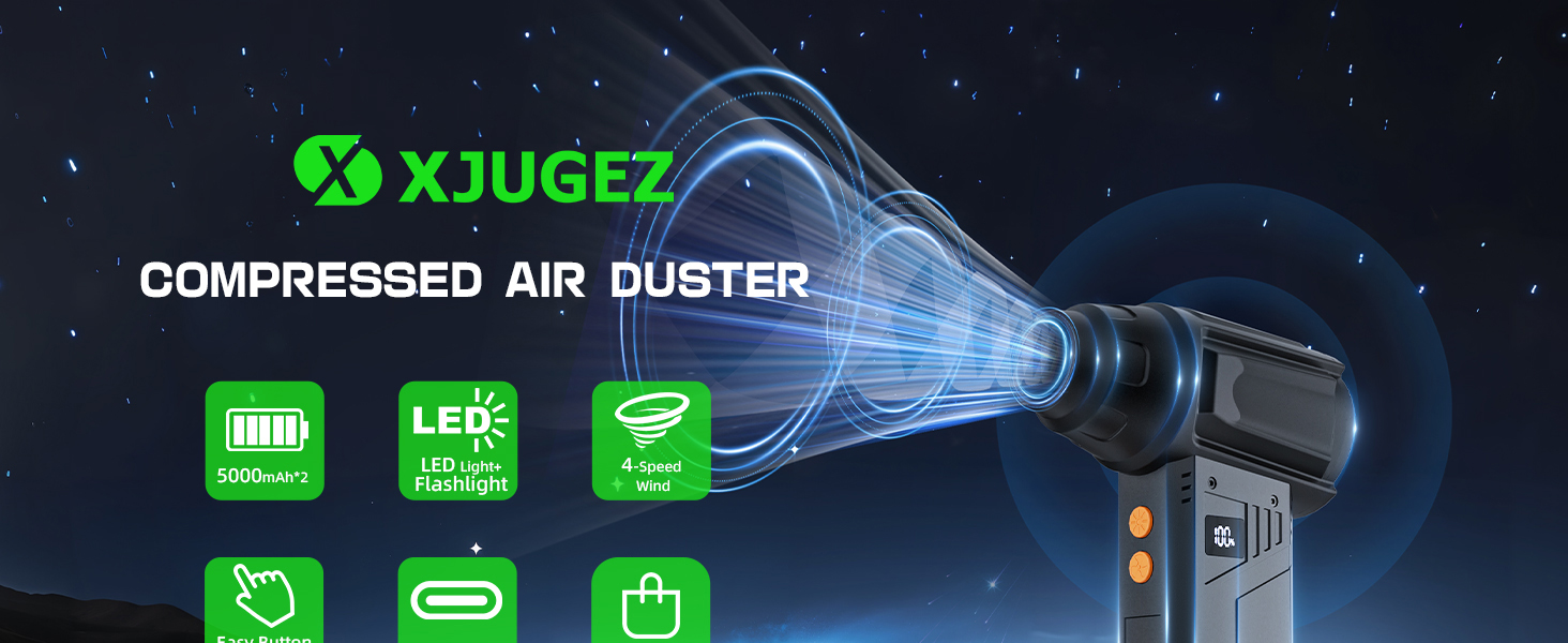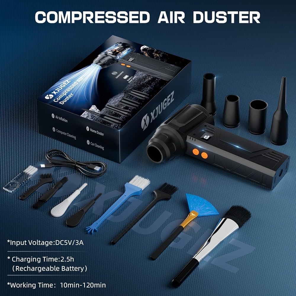 【قوة وسرعة قوية】تتمتع منفضة الهواء الكهربائية المزودة بشاشة عرض بسرعة تصل إلى 180,000 دورة في الدقيقة لإزالة الغبار والحطام بشكل فعال، ومروحة نفاثة مزودة ببطاريات قابلة لإعادة الشحن بقدرة 5000 × 2 مللي أمبير في الساعة لعمر بطارية طويل للغاية، وهي بديل مستدام لعلب الهواء التي تُستعمل لمرة واحدة، مما يعزز تجربة التنظيف الخاصة بك.