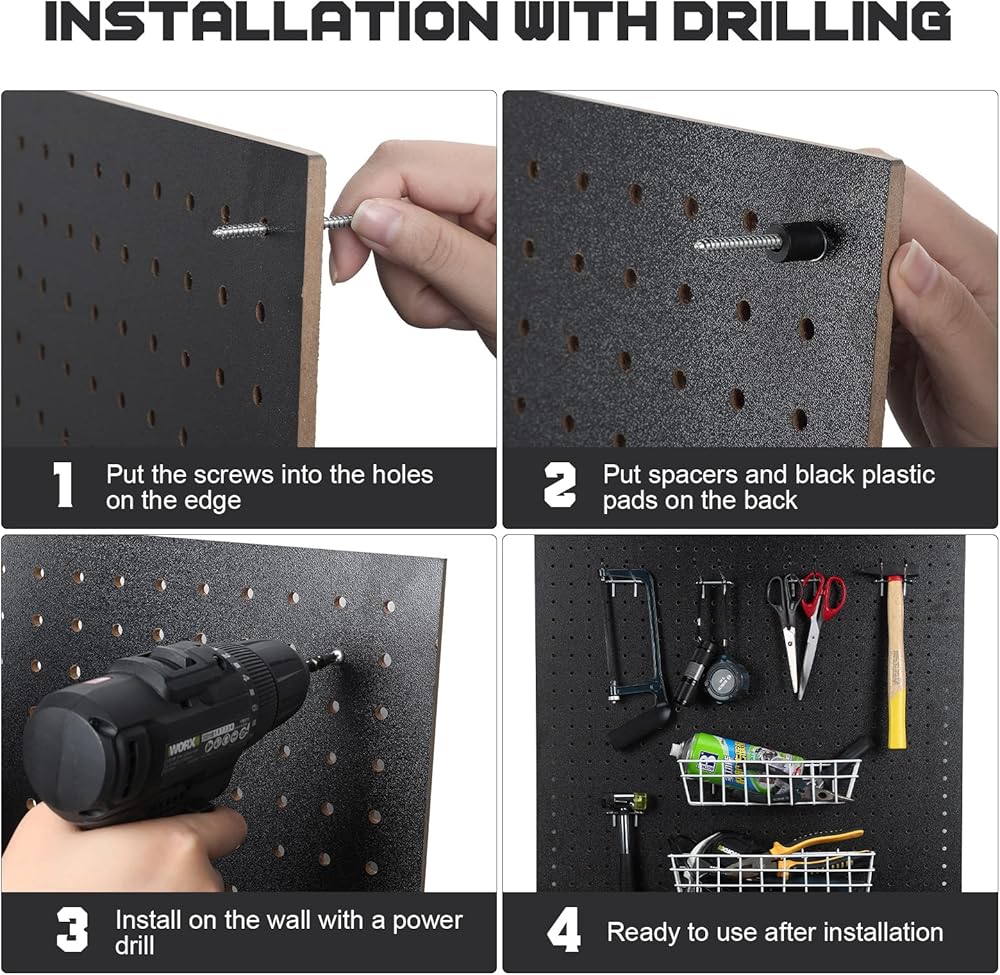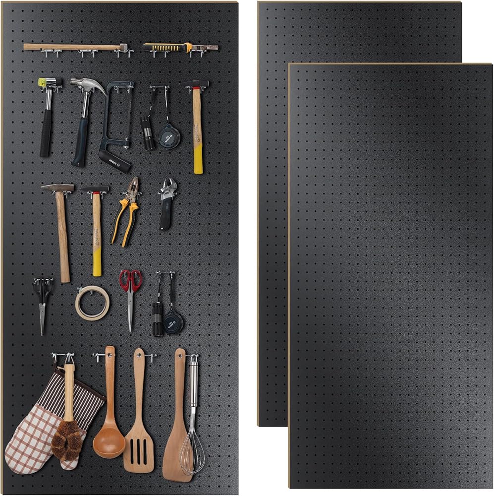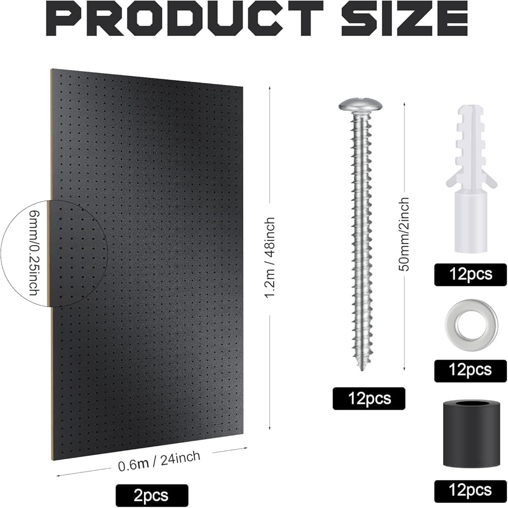 2 قطعة من ألواح الخشب الليفية عالية الكثافة مقاس 60.96 × 48 بوصة، عرض مثبت على الحائط، لوح بيجبورد أسود مع أجهزة تركيب، ألواح ربط ذات فتحات مستديرة للجدران، ومنظمات ورش عمل غرفة المرآب الحرفية والتخزين