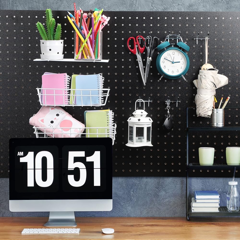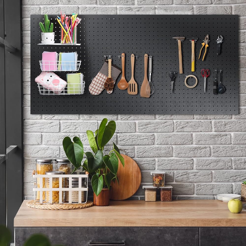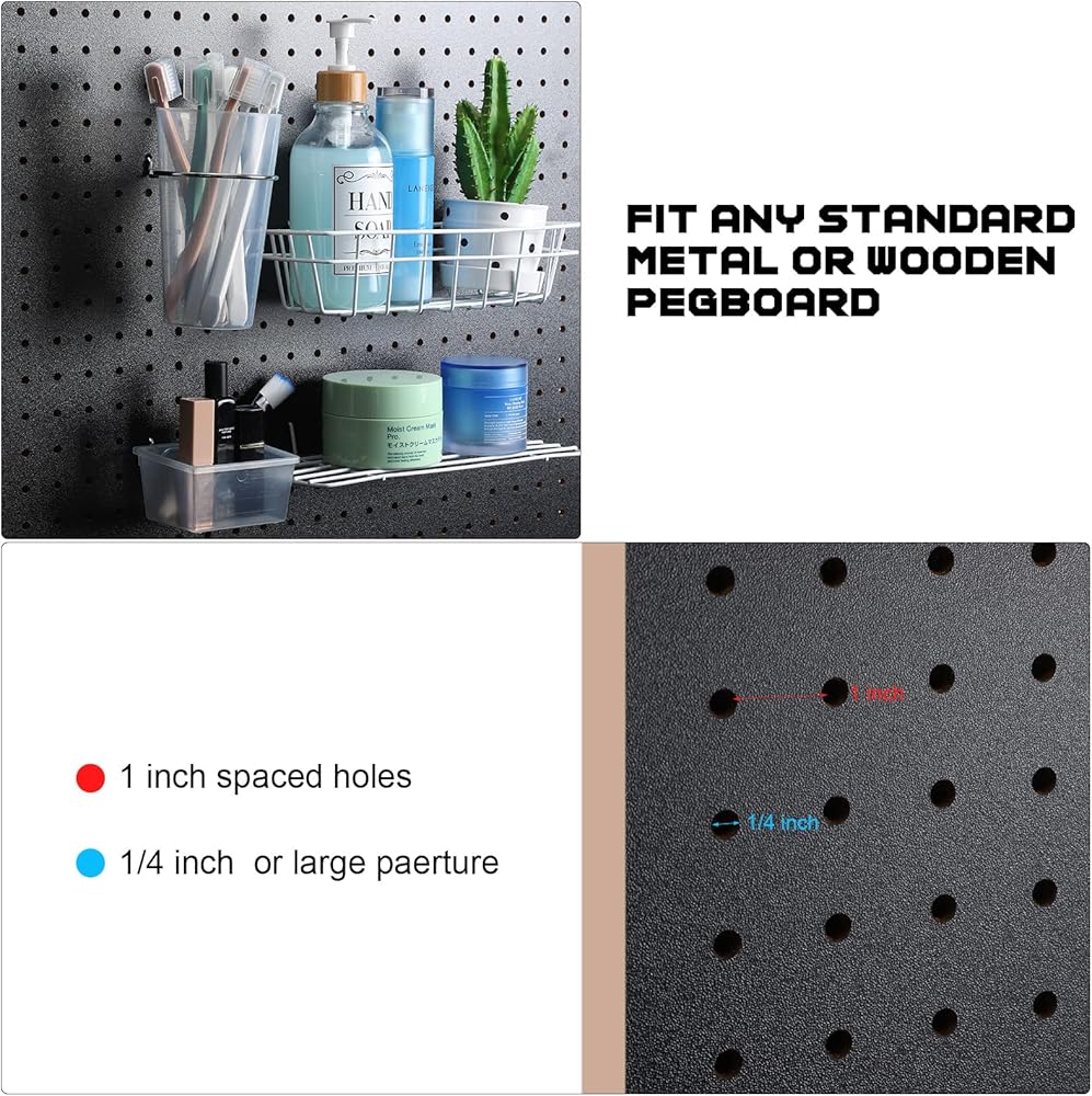 لوح Pegboard عالمي: يحتوي اللوح الليفي mdf على فتحة لوحية عالمية مقاس 1/4 بوصة مع حوالي 1 بوصة من المنتصف إلى الفتحة، ويمكن تعليق الخطافات والأقواس والأرفف والسلال وغيرها من الملحقات لتوفير أقصى مساحة للتخزين، وهو خيار جيد للتخزين المنزلي؛ ملاحظة: يرجى الاطلاع على حجم وسمك اللوح الليفي قبل شراء الملحقات