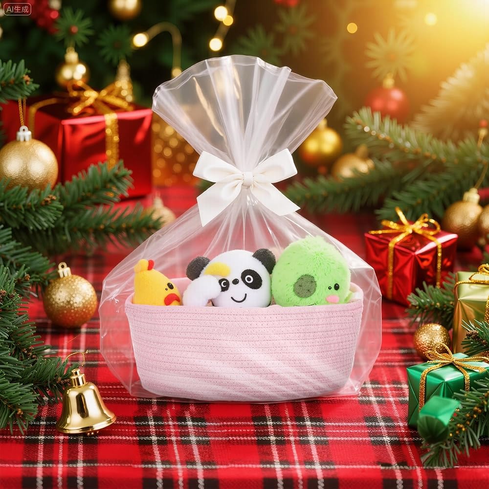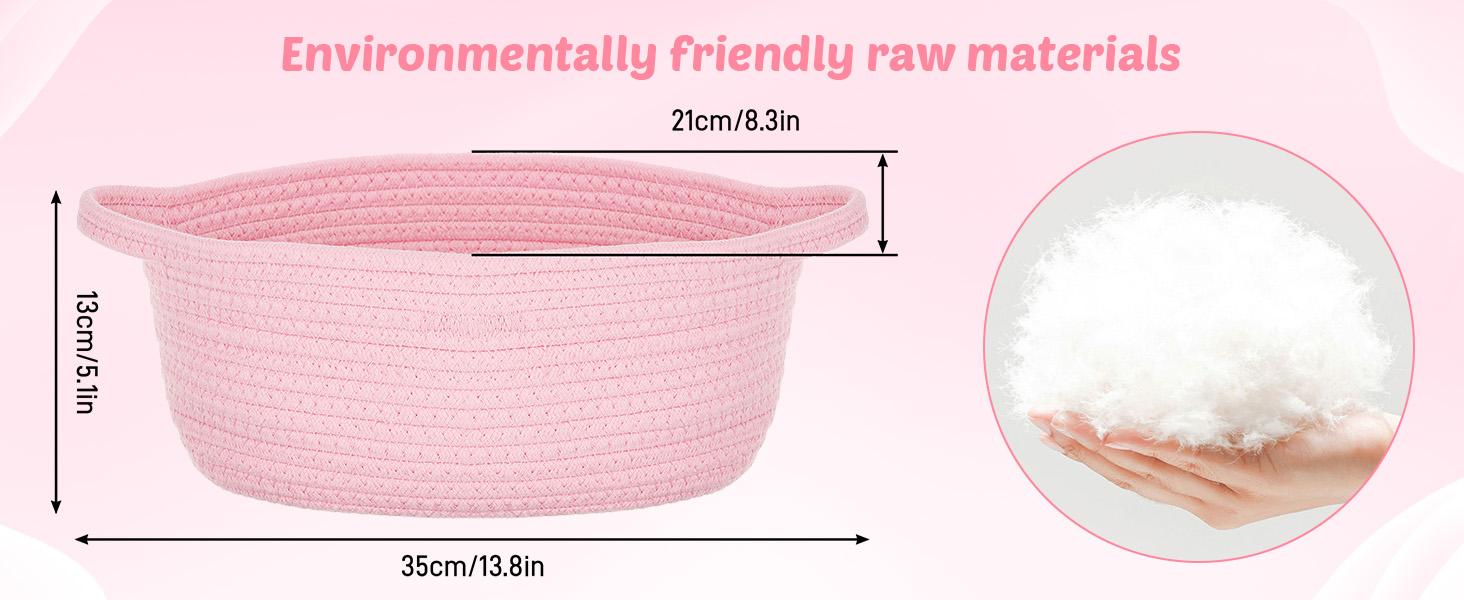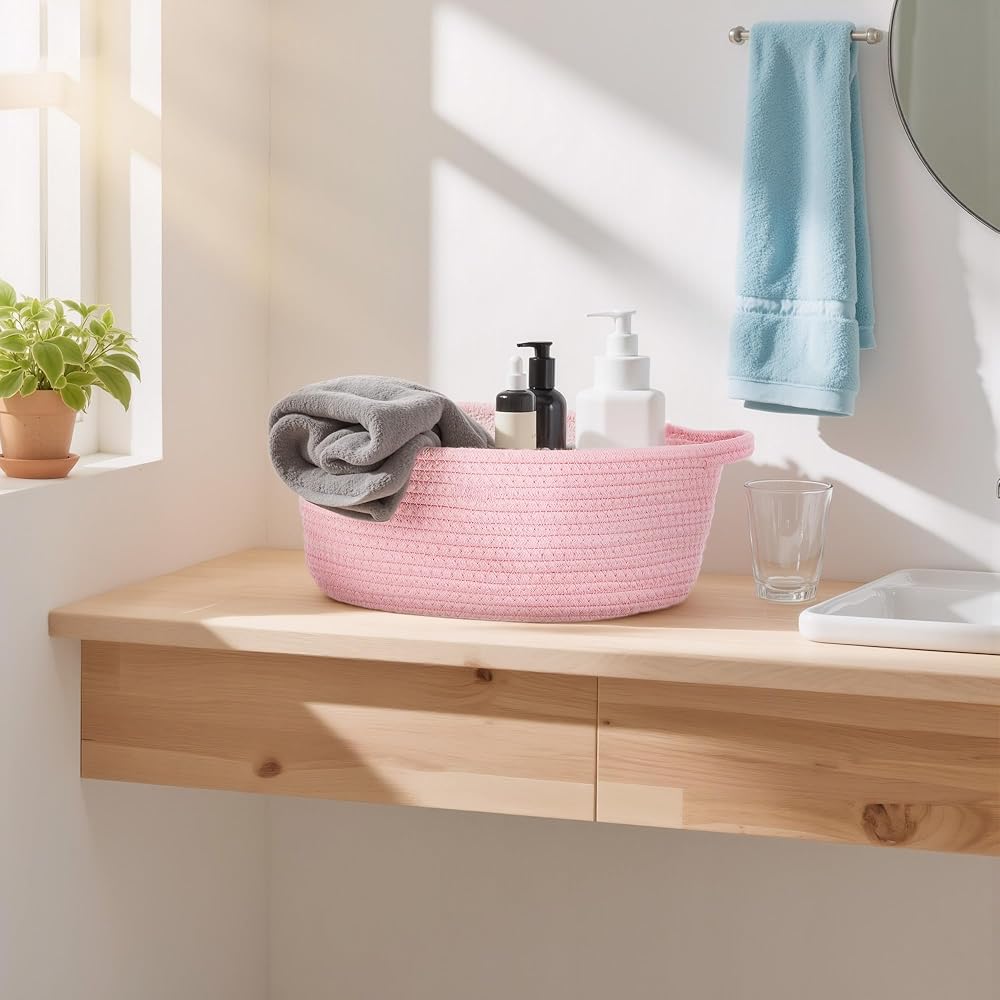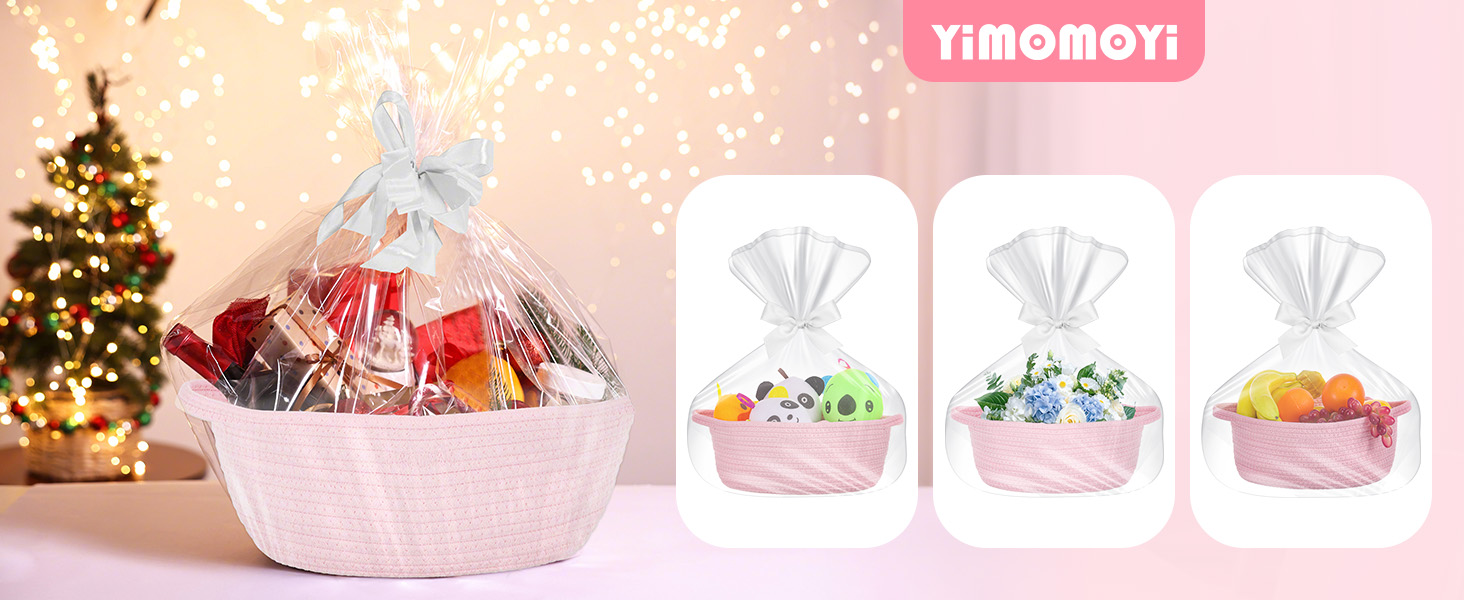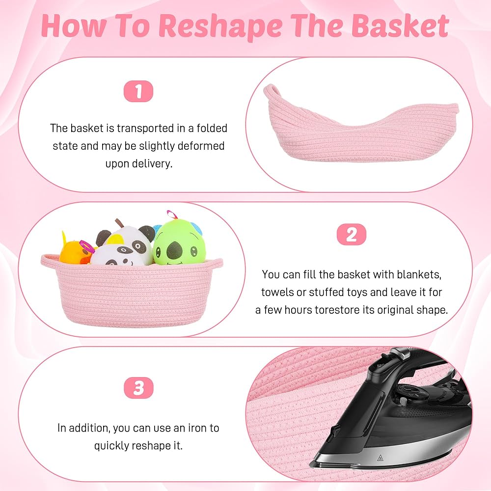 سلة منسوجة صغيرة مع أكياس هدايا وأشرطة، سلال متينة للهدايا الفارغة، سلة من الحبال لتخزين سلال ألعاب الأطفال بمقابض (وردي)