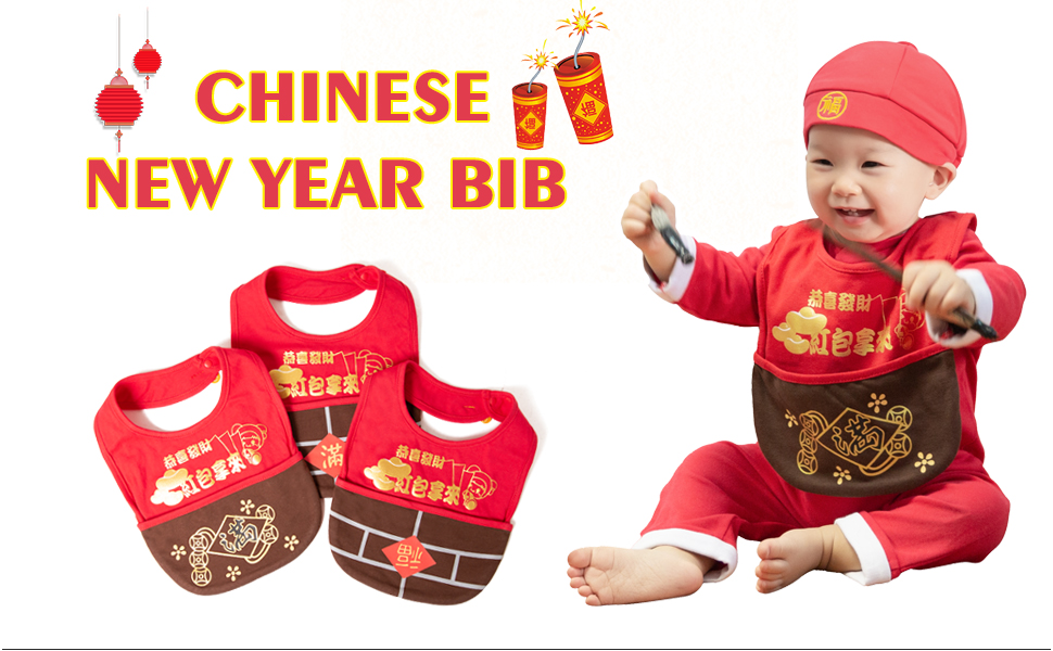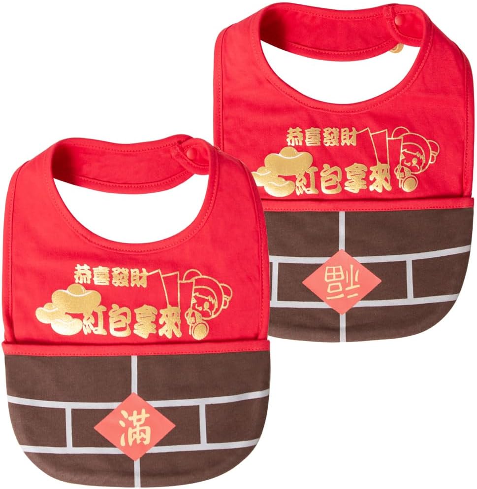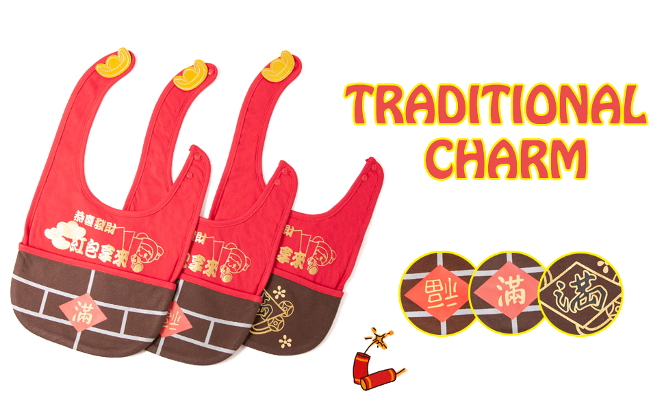 • تصميم احتفالي: مزينة بزخارف السنة الصينية التقليدية الجديدة مثل سبائك الذهب والشخصيات المحظوظة، هذه المرايل تجلب الحظ السعيد والسعادة لطفلك.