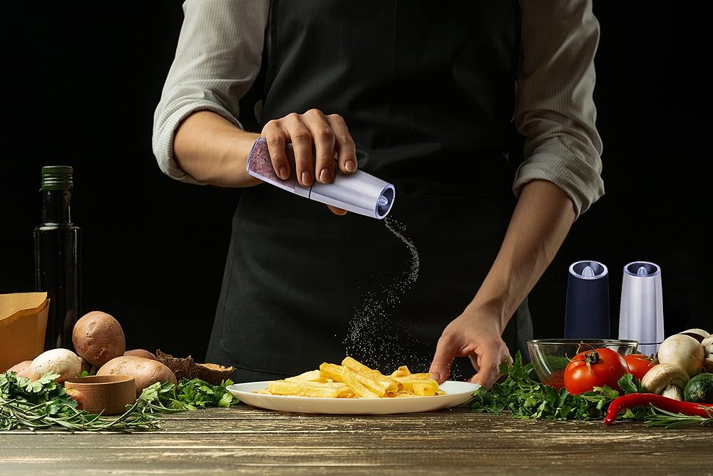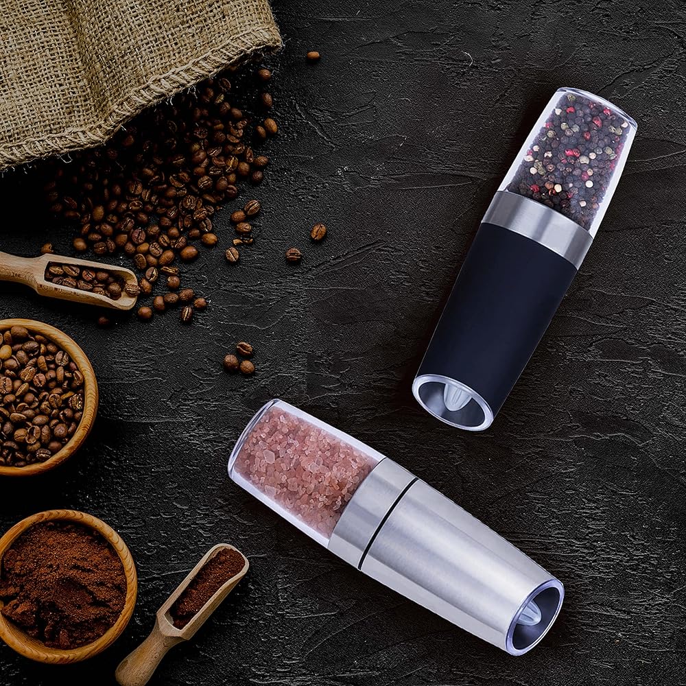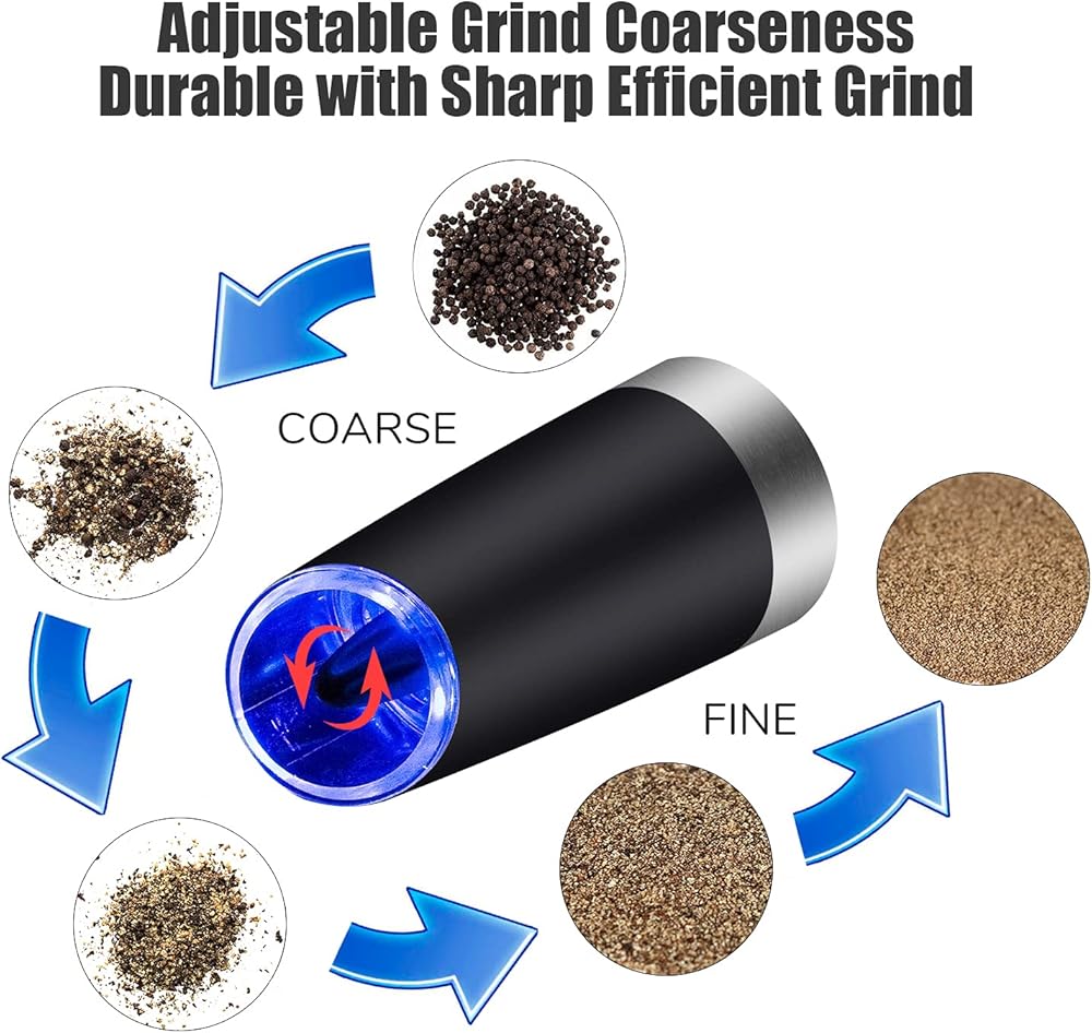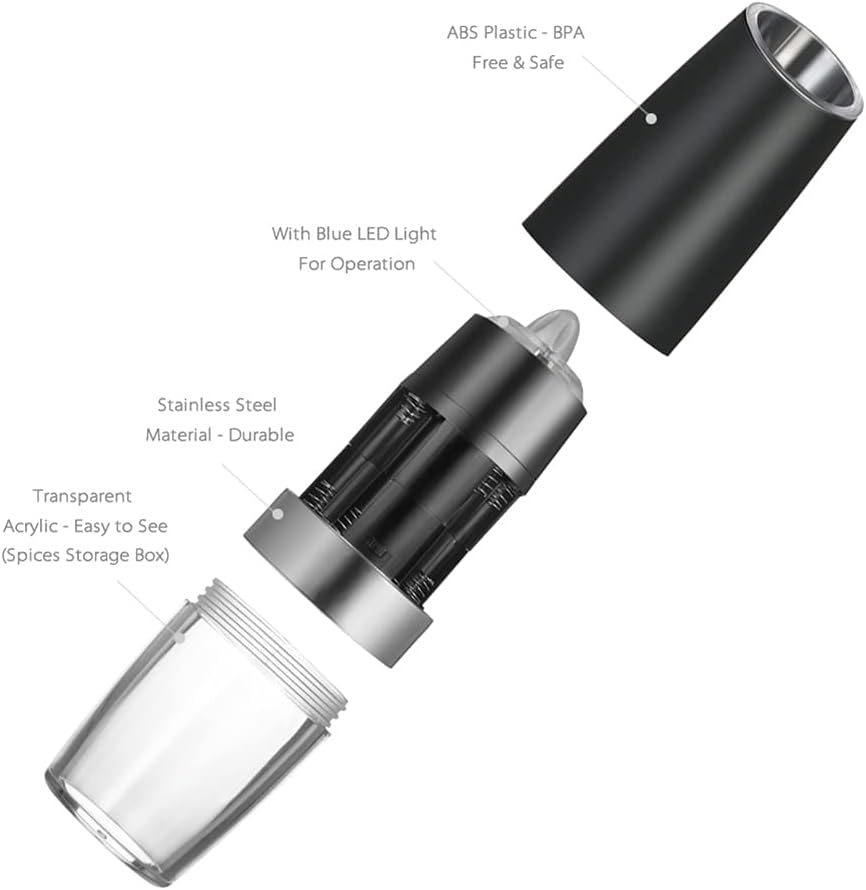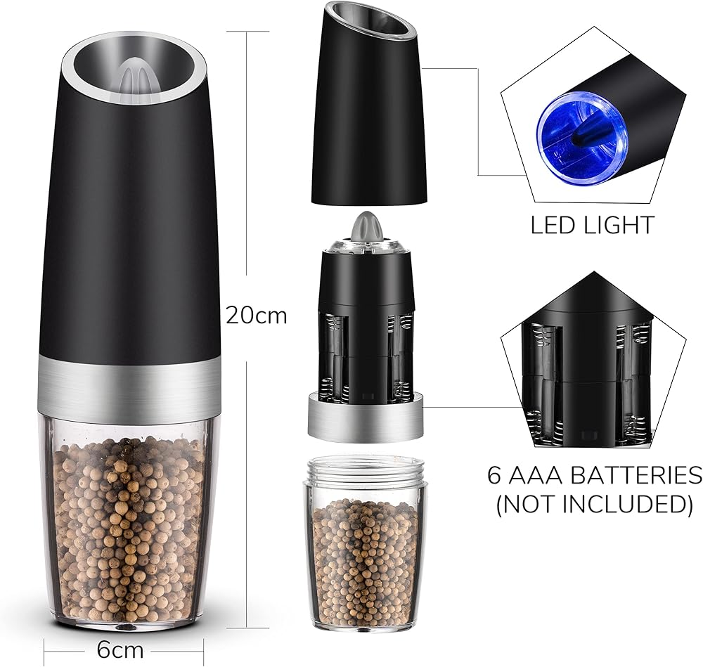 【تشغيل تلقائي بالجاذبية】: تعمل بالبطارية - تتطلب كل مطحنة 6 بطاريات AAA (البطاريات غير متضمنة). تستخدم مطحنة الملح والفلفل الخاصة بنا نظام استشعار الجاذبية المتقدم. ببساطة قم بإمالة الطاحونة (أكبر من 90 درجة) وستحصل على ملح أو فلفل أو ملح طازج. بهارات.لا حاجة للعمل بكلتا اليدين!لا حاجة للضغط على أي زر!لا حاجة لإضاعة المزيد من الوقت!
