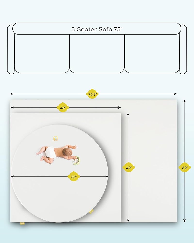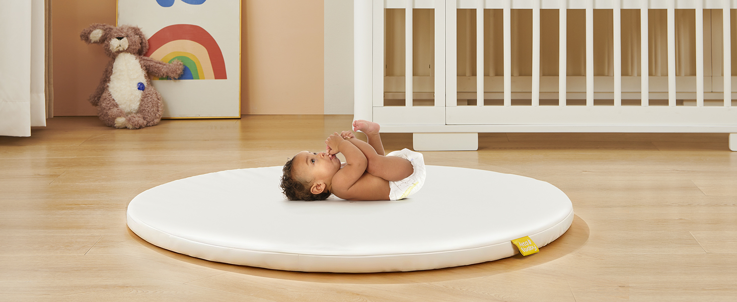 مساحة لعب مستديرة آمنة مقاس 99 سم: نعلم جميعًا أن وقت الاستلقاء على البطن ضروري لتقوية عضلات الأطفال وتطوير مهاراتهم الحركية. تتميز سجادة وقت البطن هذه بسطح لطيف ومستوٍ مع الكمية المناسبة من التوسيد. إنها مثالية لوقت البطن! وستشعر براحة البال عندما تعلم أنها تم اختبارها لتلبية معايير لجنة سلامة المنتجات الاستهلاكية (CPSC) للرضع والأطفال الصغار.
