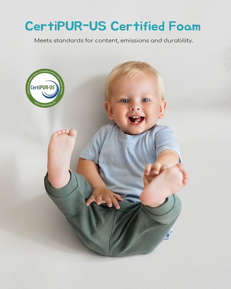 معتمدة من CertiPUR-US: الوسادة الإسفنجية مقاس 1.2 بوصة هي النعومة المناسبة لحماية الأطفال من الحوادث، ولكنها ليست ناعمة جدًا لدرجة أنها ستؤثر على تطور مهاراتهم الحركية. تمت الموافقة على سجادة لعب الأطفال هذه من قبل برنامج CertiPUR-US لمحتواها وانبعاثاتها ومتانتها، وهي استثمار رائع لأطفالك الصغار.