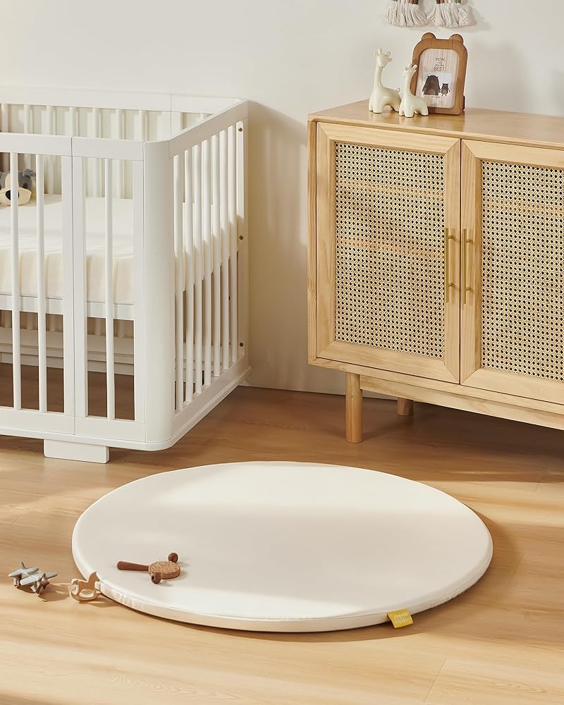 سجادة لعب الأطفال متعددة الاستخدامات: تعتبر سجادة أرضية الأطفال هذه باللون البيج مثالية لوقت الاستلقاء على البطن عند استخدامها مع منشفة ملفوفة أو غيرها من الدعائم. يمكنك أيضًا إقرانها مع أي صالة ألعاب رياضية أو ألعاب من اختيارك لإنشاء ملعب لطفلك فقط. وبفضل شكلها الدائري الذي يبلغ مقاسه 99 سم، فهي توفر مساحة كبيرة لطفلك الصغير لتعلم الزحف والمشي.