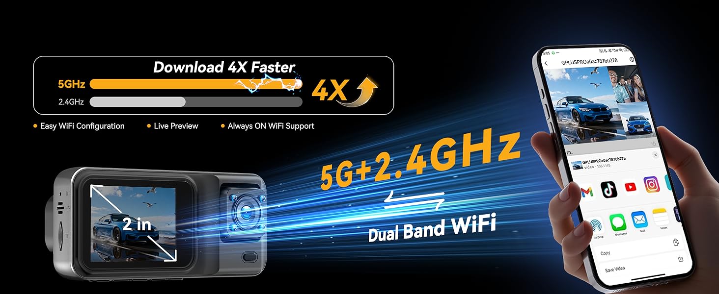 【تحكم واي فاي/تطبيق ذكي 5G مطور】- كل ما عليك فعله هو توصيل كاميرا أجهزة القياس بتطبيق الهاتف الذكي الخاص بك عبر واي فاي ومن ثم يمكنك استخدام تطبيق "viidure" لعرض كاميرا أجهزة القياس وتشغيلها وإدارتها على أجهزة IOS أو Android الخاصة بك، ومراقبة مقاييس الفيديو دون عناء كدليل على الحوادث. يمكنك أيضًا تنزيل التسجيلات وتحريرها في تطبيق "viidure". بنقرة واحدة فقط، يمكنك مشاركة مشهد سفرك ولحظاتك الرائعة مع أصدقائك وعائلتك ووسائل التواصل الاجتماعي