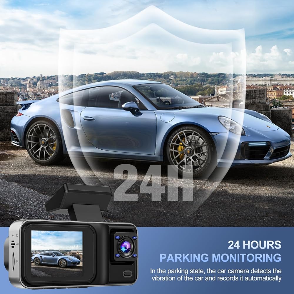 【كاميرا أجهزة القياس】عندما تكتشف كاميرا أجهزة القياس اصطدامًا، سيتم تشغيلها تلقائيًا ثم تسجيل فيديو محمي. يمكن تشغيل جهاز كشف الاصطدام أو مستشعر الحركة عن طريق الاصطدام أو الحركة أثناء ركن السيارة، أو إذا حاول شخص ما سرقة سيارتك. ستوفر كاميرا لوحة القيادة هذه شاشة انتظار لسيارتك على مدار 24 ساعة (يتطلب التسجيل على مدار 24 ساعة توصيل مجموعة الأسلاك الصلبة، تباع بشكل منفصل)
