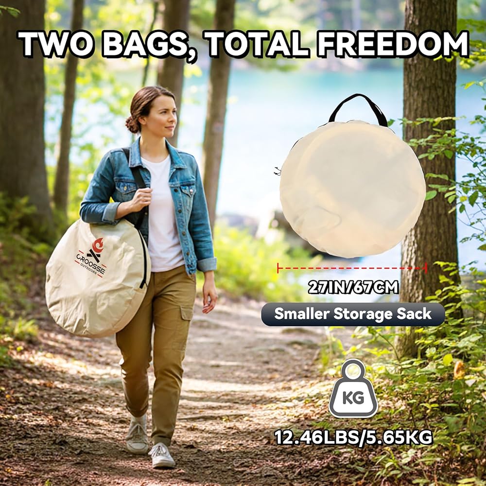 سهلة الإعداد والنقل: استمتع بتجميع منبثق خالٍ من المتاعب لمدة دقيقة واحدة وهو مثالي للمبتدئين. للتخزين، قمنا بتضمين حقيبتين للحمل من أجل المرونة. استخدم الحقيبة الأكبر مع طي بسيط أو اتبع التعليمات المرفقة لضغطها في الحقيبة الأصغر مقاس 23.6 بوصة. يزن 10.91 رطل فقط، وهو سهل النقل والتخزين بشكل لا يصدق